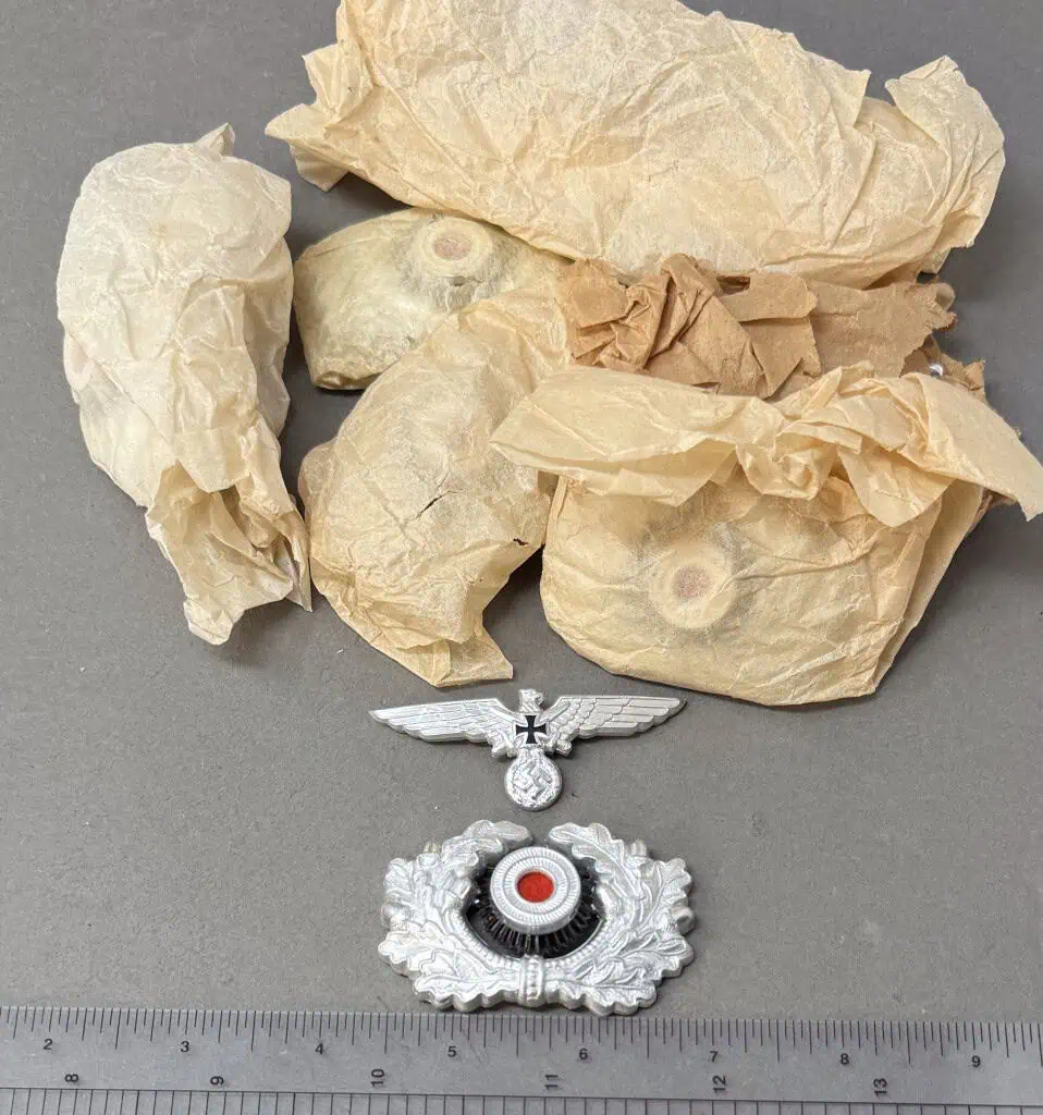Original Near Mint WWII German NS-RKB MEMBER’S CAP EAGLE. (NS-RKB Hoheitsabzeichen) And Cockade With Original Wrapper Brought Home By A U.S. Veteran Certified