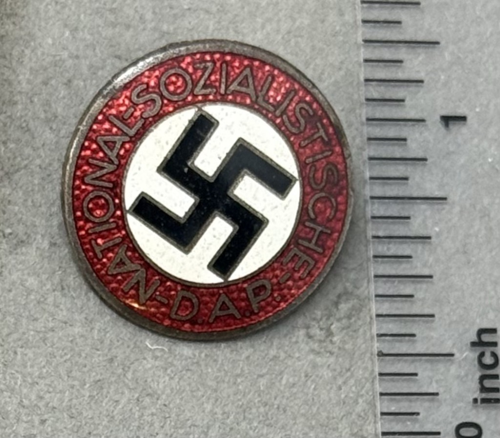 Original German NSDAP (Nazi) Party Enamel Early Membership Badge Certified By The Gettysburg Museum Of History. The NSDAP, Nationalsozialistische Deutsche Arbeiterpartei, (National Socialist German Worker’s Party), was originally founded in Munich as the DAP, Deutsche Arbeiterpartei, (German Worker’s Party), on January 5TH 1919. When Adolf Hitler joined the DAP in the autumn of 1919, he was to reform what was basically a debating society into an active political party. Appointed as the first chairman of the party on July 29TH 1921 Hitler was to restructure it along para-military lines in a hierarchy of four levels of government. Of Note: In late 1934 items manufactured for the NSKK, including membership pins, came under the quality control of the RZM, Reichzeugmeisterei, (National Equipment Quartermaster) and as a result were marked with the RZM logo when appropriate. Standard issue membership badge awarded to all personnel on acceptance as an official party member. 24mm diameter, die struck alloy badge NSDAP membership badge with multi-colored enamel work. Badge features a red, circular outer border with embossed silvered script, “National-Sozialistiche-D.A.P.”, encompassing a white enamel field with canted black enamel swastika. Has a pinback intact. RZM marked Maker code M1/101 for maker Gustav Brehmer, Markneukirchen. In very good but used condition. Nice used example showing the expected but mild storage age and wear (see photos) 100% Guaranteed to be authentic. Complete museum documentation (COA) Provided. Certified by The Gettysburg Museum of History. The Gettysburg Museum of History does not support or condone Adolf Hitler or the Nazi Party and is only offering this as a historic relic. Please see our other items. Also note when browsing our web site there are several pages of items, at the bottom of the list look for other page numbers. Don’t Miss It! NICE EXAMPLE!