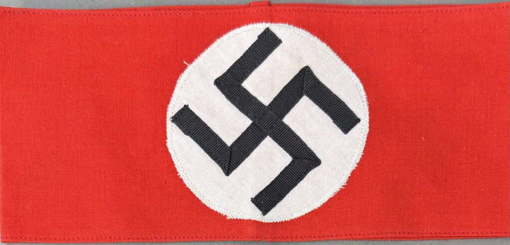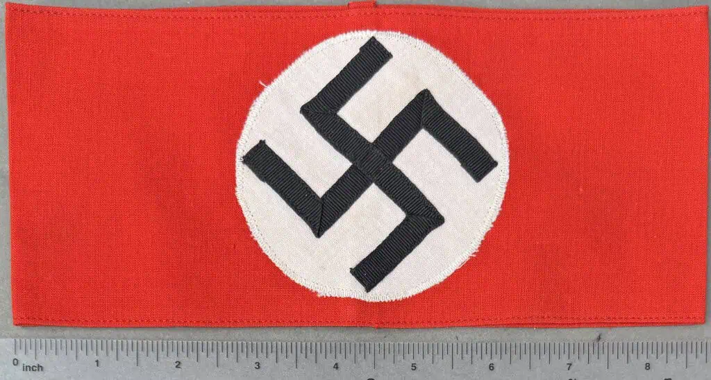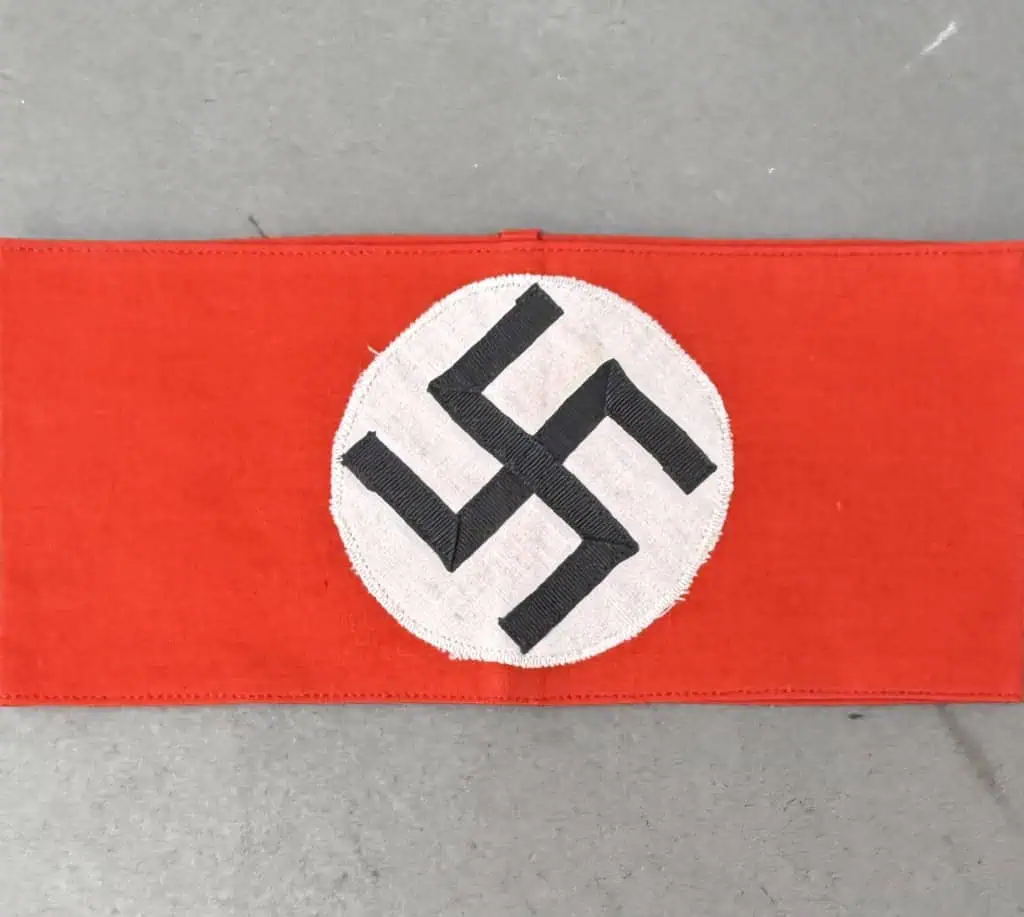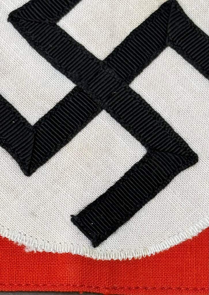 Original WWII Nazi German Multi-piece Construction Armband Brought Home By A U.S. Veteran. A U.S. vet bring back in good used condition. Some light wear from storage. Deluxe version of the Nazi Arm Band. The most recognizable pieces of insignia associated with the Nazi regime is the swastika armband. Utilized by pretty much by all the organization of the Third Reich in one form or another. The swastika, (a Sanskrit word meaning “well-being”), is an ancient symbol that was utilized in numerous diverse cultures and signified both the cycle of life and the sun. The swastika was also a Nordic rune and the pagan Germanic symbol for Thor, God of Adventurers. A high-quality cotton cloth materiel. approximately 9cm diameter separate piece sewn white disk, and super high-quality multi-piece rayon swastika (SEE PHOTOS) A nice quality example. A very good earlier example. Gettysburg Museum Certified (COA) provided. Rare 100% Guaranteed to be authentic. Brought home by a U.S Veteran as a trophy of war. Sold for historic purposes only. See our other pieces on our web site. Also note when browsing our web site there are several pages of items, at the bottom of the list look for other page numbers. You wanted the best this is it. Do not miss this one! Armbands and are in HIGH DEMAND! Don’t Miss it! NICE EXAMPLE