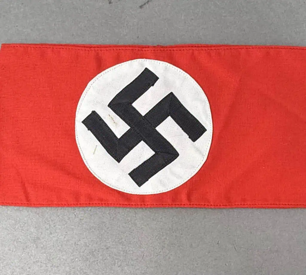 Original WWII Nazi German Multi-piece Construction Armband With RZM Tag Brought Home By A U.S. Veteran. A U.S. vet bring back in good used condition. Some light wear from storage and use. Deluxe version of the Nazi Arm Band. The most recognizable pieces of insignia associated with the Nazi regime is the swastika armband. Utilized by pretty much by all the organization of the Third Reich in one form or another. The swastika, (a Sanskrit word meaning “well-being”), is an ancient symbol that was utilized in numerous diverse cultures and signified both the cycle of life and the sun. The swastika was also a Nordic rune and the pagan Germanic symbol for Thor, God of Adventurers. A high-quality cotton cloth materiel. approximately 9cm diameter separate piece sewn white disk, and high-quality multi-piece swastika. (See photos). Still has the original paper RZM tag! (SEE PHOTOS) A nice quality example. A very good earlier example. Gettysburg Museum Certified (COA) provided. Rare 100% Guaranteed to be authentic. Brought home by a U.S Veteran as a trophy of war. Sold for historic purposes only. See our other pieces on our web site. Also note when browsing our web site there are several pages of items, at the bottom of the list look for other page numbers. Do not miss this one! NICE EXAMPLE! Armbands and are in HIGH DEMAND! Don’t Miss it! Scarce with the RZM tag attached to the armband. Clean almost mint example with slight storage wear.