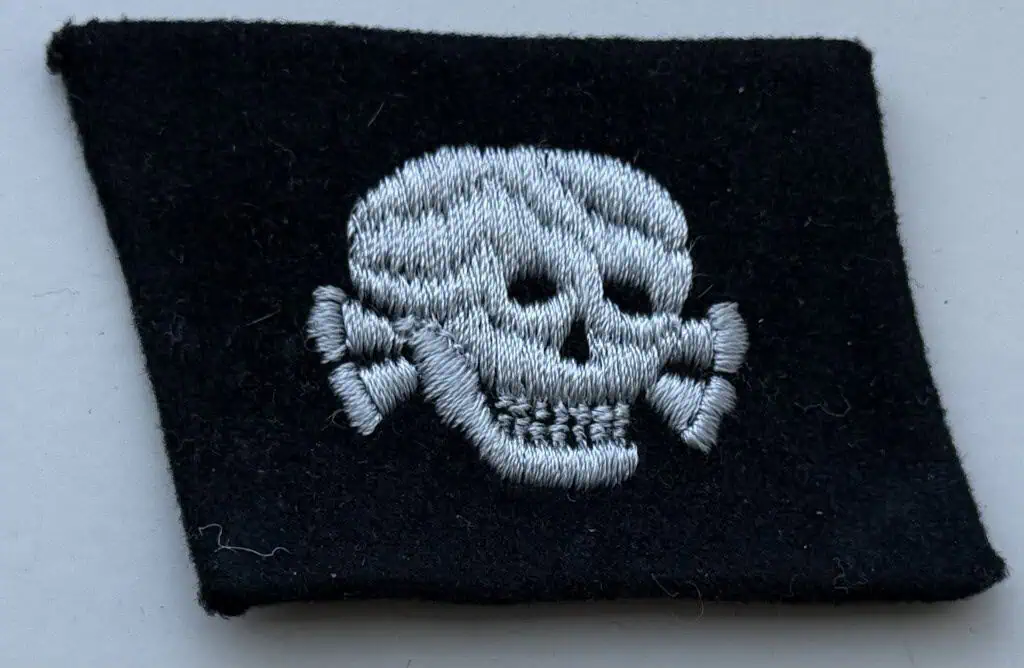 Original OUTSTANDING WWII Waffen SS M/NCO’S “TOTENKOPF” COLLAR TAB. (Kragenpatte) From Dachau Certified