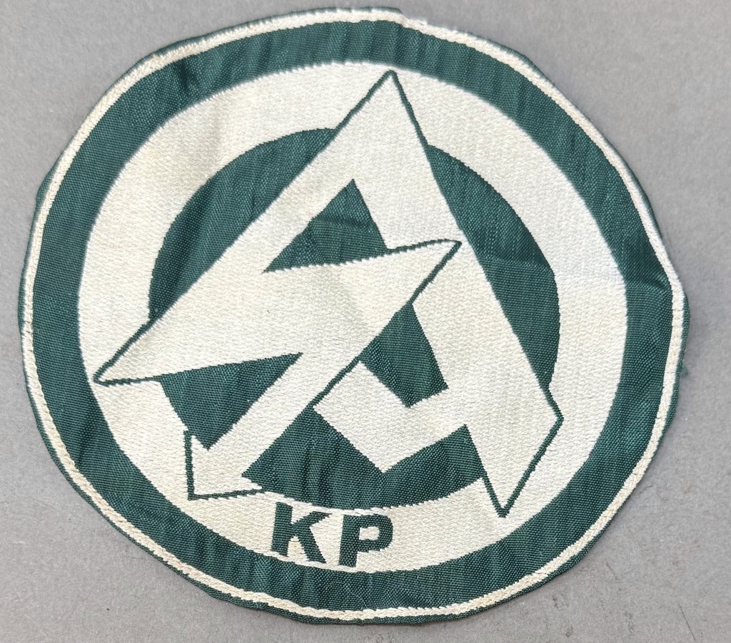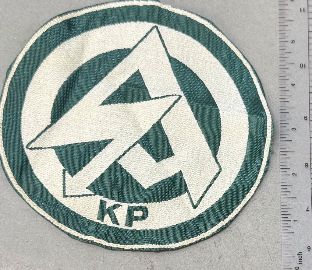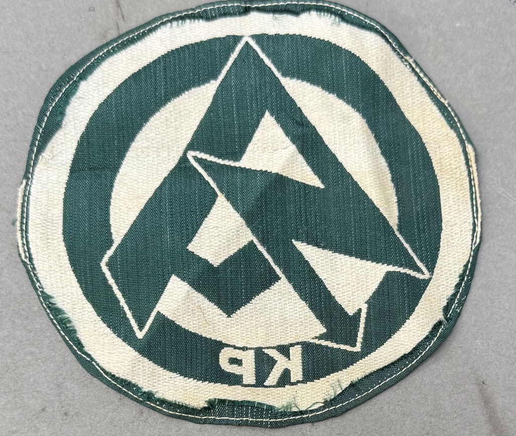 Original German NSDAP (NAZI PARTY) Brown Shirts SA Sports Shirt Insignia Gruppe Kurpfatz (KP) Certified. SA (ie. ‘Sturmabteilungen’), ‘BeVo’-woven sport-shirt insignia (of the third ie. final type) as was intended for an SA-member who served within the Grupp Niedersachsen (NS) and that comes in overall very nice condition. The fairly large-sized- badge (having a diameter of approximately 14 cms.) is woven in Green-coloured linnen on a white-coloured (and also linnen-based-) background (being as stated the branchcolour of the Gruppe Kurpfatz (KP)’ and shows light wear and age (see pictures). Simply a very attractive and unusually encountered piece of SA-related sport-shirt insignia! Gettysburg Museum Certified (COA) provided. Rare 100% Guaranteed to be authentic. Sold for historic purposes only. See our other pieces on our web site. Also note when browsing our web site there are several pages of items, at the bottom of the list look for other page numbers. OUTSTANDING VERY RARE USED EXAMPLE!