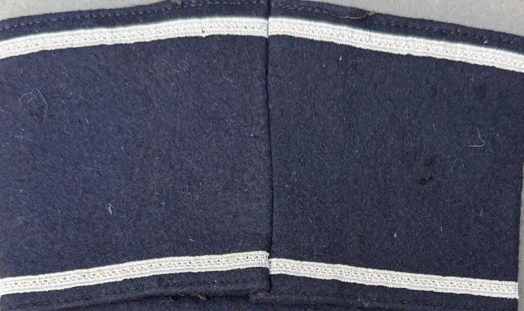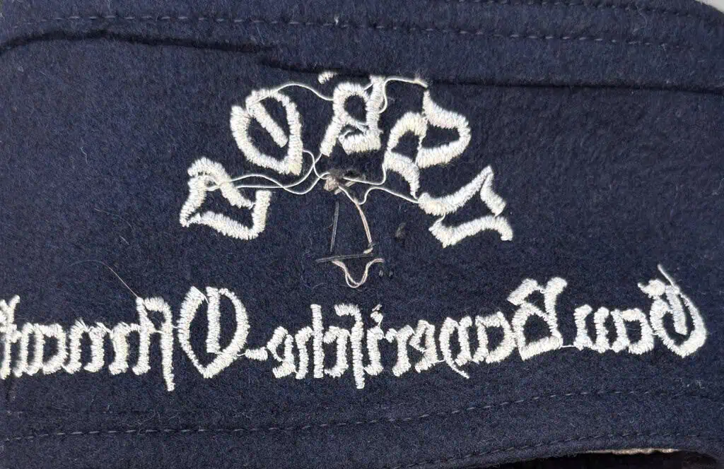 Original RARE German NSDAP (NAZI PARTY) NSKOV MEMBER District (Gau Bayerische-Ostmark) Armband Certified. The NSKOV, “National Sozialistische Kriegsopferversorung” (National Socialist War-disabled-support [Organization]), was formed in 1930 and institutionalized in 1933, as an associated society assisting NSDAP party members who had become disabled as a result of war injuries. (National Sozialistische Kriegsopferversorung) : Black wool base, with two 5 mm wide strips of fine aluminum bullion wire interlaced with white threading sewn horizontally near the top and bottom edges, white embroidered lettering in the centre with “NSKOV” in an arch and “Gau Moselland” below, with a 15.3 mm x 30.7 mm silvered zinc badge illustrating the NSKOV insignia, the badge marked with the RZM (Reichszeugmeisterei) insignia on the reverse, the armband measuring 88 mm x 330 mm, the bottom aluminum bullion wire strip coming away from the body of the armband for approximately 30 mm near the embroidered type, near extremely fine. Gettysburg Museum Certified (COA) provided. Rare 100% Guaranteed to be authentic. Sold for historic purposes only. See our other pieces on our web site. Also note when browsing our web site there are several pages of items, at the bottom of the list look for other page numbers. OUTSTANDING EXAMPLE! A few nips otherwise very nice Scarce Armband!