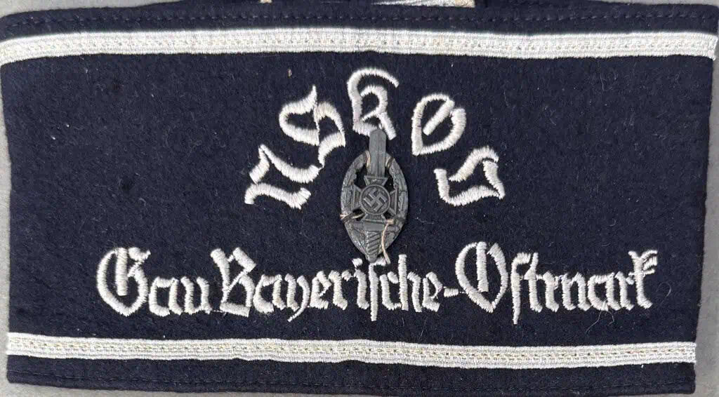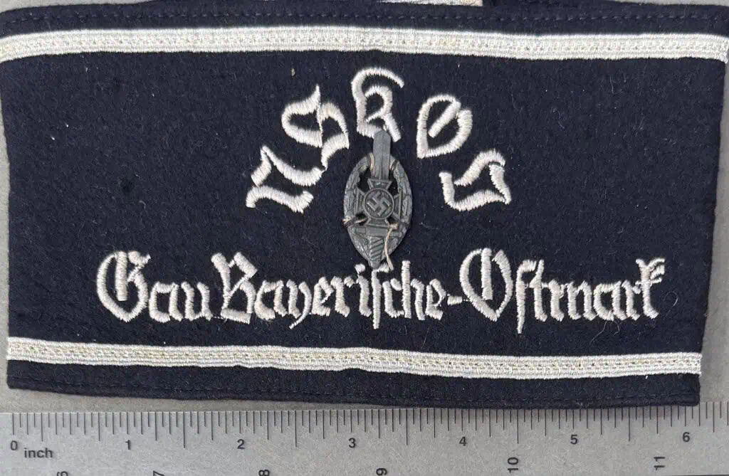 Original RARE German NSDAP (NAZI PARTY) NSKOV MEMBER District (Gau Bayerische-Ostmark) Armband Certified