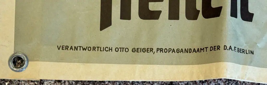 Original RARE Third Reich German DAF POSTER Certified By The Gettysburg Museum Of History