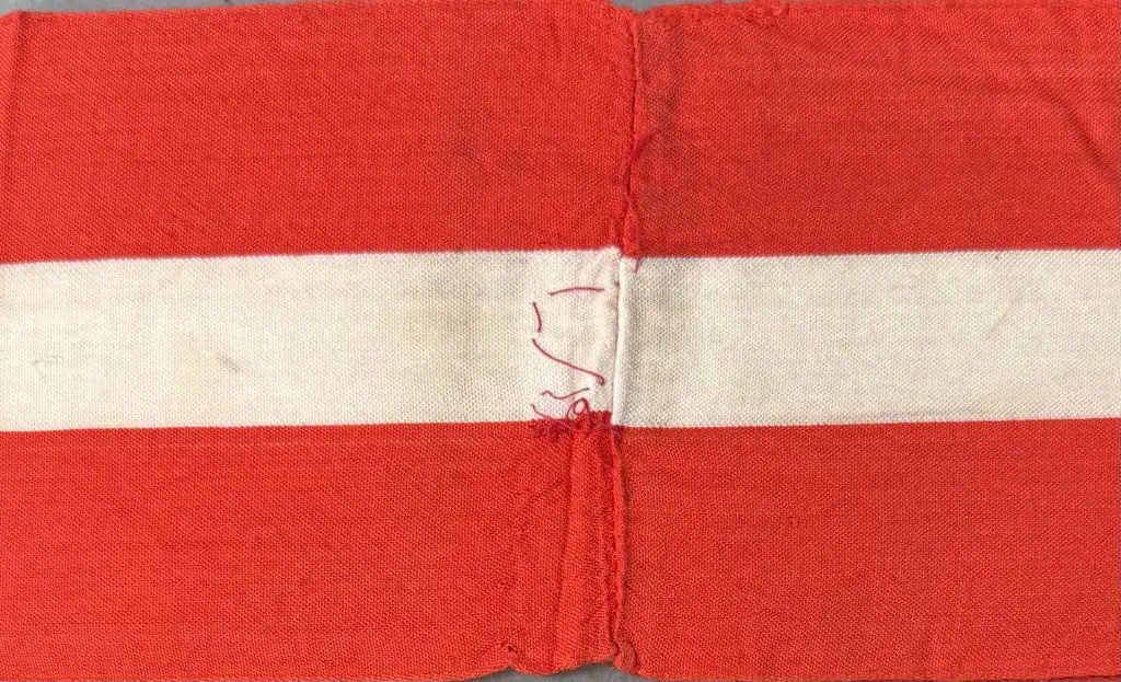 Original Third Reich German Hitler Youth Arm Band Certified. A, 18cm x 11.5cm, multi-piece construction, with red cotton blend armband, with a central, 25mm wide, white horizontal stripe, with a separate sewn white diamond with a bevo woven black swastika. Nice example showing the expected minor age and wear overall good condition. One of the classic desirable collector’s items from the third Reich in used but in good but used condition. Some wear and a few pin holes but looks good. Gettysburg Museum Certified (COA) provided. 100% Guaranteed to be authentic. Sold for historic purposes only. See our other pieces on our web site. Also note when browsing our web site there are several pages of items, at the bottom of the list look for other page numbers. Great armband