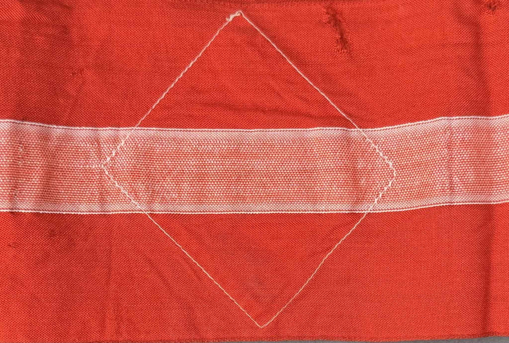 Original Third Reich German Hitler Youth Arm Band Certified. A, 18cm x 11.5cm, multi-piece construction, with red cotton blend armband, with a central, 25mm wide, white horizontal stripe, with a separate sewn white diamond with a bevo woven black swastika. Nice example showing the expected minor age and wear overall good condition. One of the classic desirable collector’s items from the third Reich in used but in good but used condition. Some wear and a few pin holes but looks good. Gettysburg Museum Certified (COA) provided. 100% Guaranteed to be authentic. Sold for historic purposes only. See our other pieces on our web site. Also note when browsing our web site there are several pages of items, at the bottom of the list look for other page numbers. Great armband