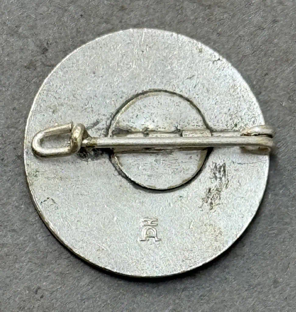Original WWII German NSDAP (NAZI PARTY) DSB MEMBERSHIP BADGE, Certified. A third reich period DSB (Deutscher Siedlerbund/German League of Homeowners) membership badge; in silvered bronze and white, black, green, and red enamels; horizontal pinback; Maker marked on the reverse; and nicely maker marked measuring 23.30 mm in diameter; weighing 4.3 grams; with the majority of the original silver finish intact in overall good condition with some storage age and expected issues. 100% Guaranteed to be authentic Complete Museum documentation (COA) Provided. Certified by The Gettysburg Museum of History. Please see our other items. Also note when browsing our web site there are several pages of items, at the bottom of the list look for other page numbers. Great maker marked example!