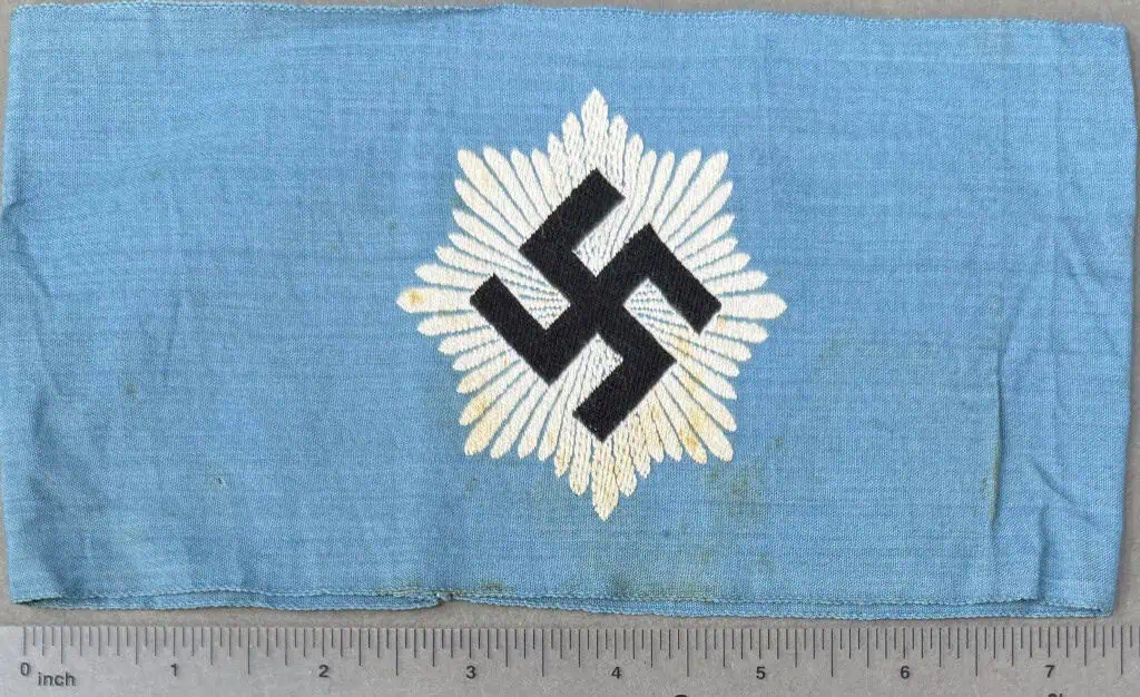 Original WWII German NSDAP (NAZI PARTY) RLB Armband. Formed in late 1932 the Deutscher Luftschutzverband (German Air Protection League), was a voluntary organization designed to provide civil air raid protection in large civilian centers. Shortly after Hitler ascension to power the Deutscher Luftschutzverband was restructured and placed under the supervision of the Reichsluftfahrtministerium, (National Ministry of Aviation), under the control of Hermann Göring. On April 29TH 1933 the Deutscher Luftschutzverband was renamed RLB, Reichs Luftschutz Bund, (National Air Raid Protection League), and was given status as an official, national, organization tasked with all aspects of civil air raid defense. The RLB remained a voluntary organization with a small cadre of paid, full-time, uniformed, officials to oversee the organizations functions until June 1935 when obligatory service was introduced. First pattern, (Circa 1933-1938), mid-blue cotton construction RLB EM/NCO’s armband features a machine woven first pattern RLB emblem to the obverse center. The RLB emblem is in the form of a forty-eight point, white, starburst pattern base with the stylized, navy-blue initials, “RLB” to the center, positioned above a small, canted, navy blue swastika. This is the VERY RARE bevo deluxe version (see photo). The armband overall is a very nice example. 100% Guaranteed to be authentic Complete museum documentation (COA) Provided. Certified by The Gettysburg Museum of History. The Gettysburg Museum of History does not support or condone Adolf Hitler or the Nazi Party and is only offering this as a historic relic. Please see our other items. Also note when browsing our web site there are several pages of items, at the bottom of the list look for other page numbers. Don’t Miss It! ONE OF THE CLASSIC THIRD REICH ARTIFACTS! A RARE BEVO VERSION OF the RLB Armband.