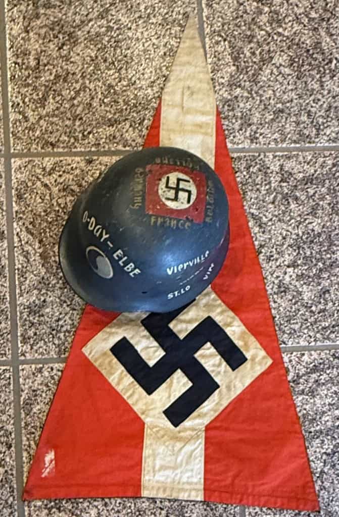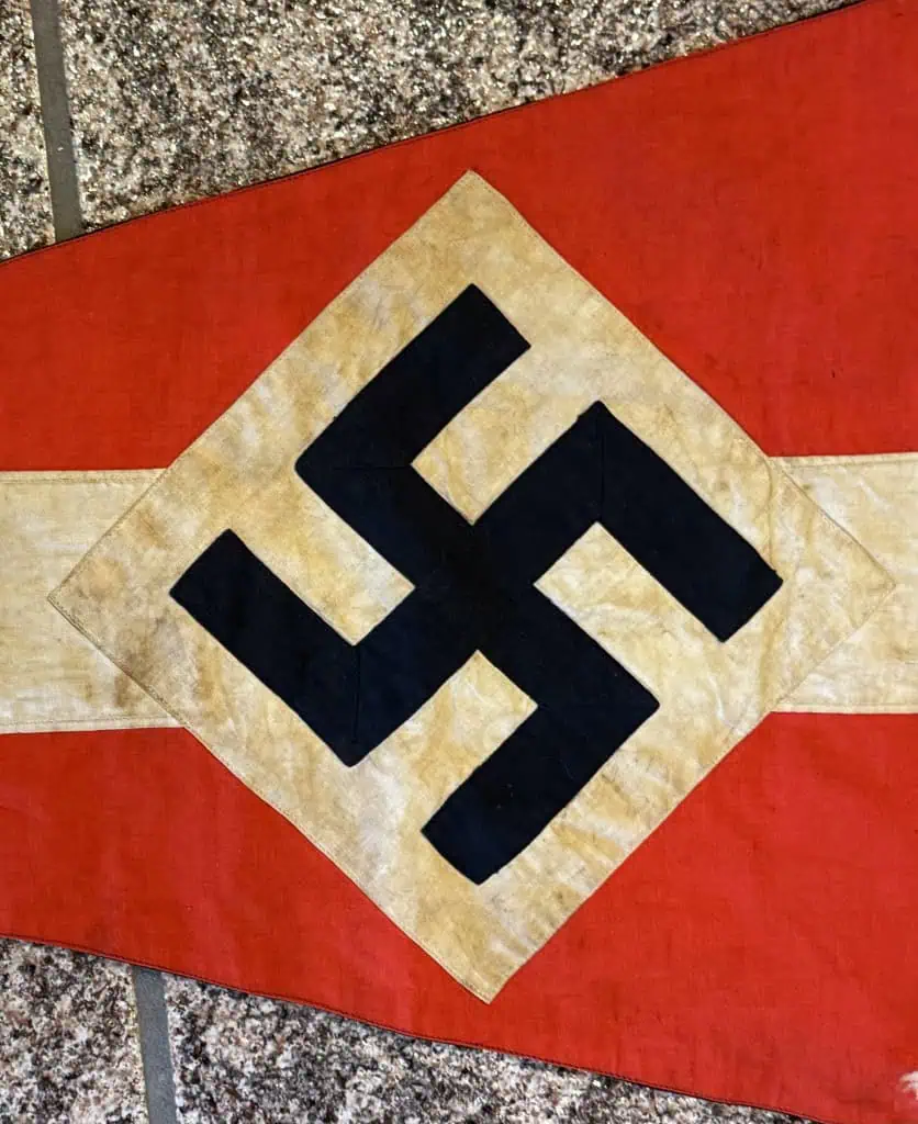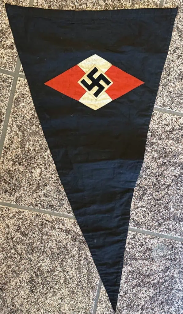 Original OUTSTANDING RARE German NSDAP (NAZI PARTY) League Of German Girls (BDM) Hitler Youth Pennant CertifiedThe League of German Girls or Band of German Maidens.  (German: Bund Deutscher Mädel, abbreviated as BDM) was the girls’ wing of the Nazi Party youth movement, the Hitler Youth. It was the only legal female youth organization in Nazi Germany. At first, the League consisted of two sections: the Jungmädelbund (“Young Girls’ League”) for girls aged 10 to 14, and the League proper for girls aged 14 to 18. In 1938, a third section was introduced, the BDM-Werk Glaube und Schönheit (“Faith and Beauty Society”), which was voluntary and open to girls between the ages of 17 and 21. Young Women and girls were encouraged to Make Nazi Patriotic craft projects like this. A very interesting and rare Pennant flag   Very skillfully constructed! Multi-piece construction. very unique measures about 30″ in length.  (see photos) BDM Girls were encouraged to make items like this,   Nice example showing the expected age some slight loss 100% Guaranteed to be authentic  in good condition an outstanding   example. Don’t miss this one!  Complete museum documentation (COA) Provided. Certified by The Gettysburg Museum of History. The Gettysburg Museum of History does not support or condone Adolf Hitler or the Nazi Party and is only offering this as a historic relic. Please see our other items.    Also note when browsing our web site there are several pages of items, at the bottom of the list look for other page numbers. . OUTSTANDING EXAMPLE!  Don’t Miss It!!!! RARE, VERY EARLY Good Condition!