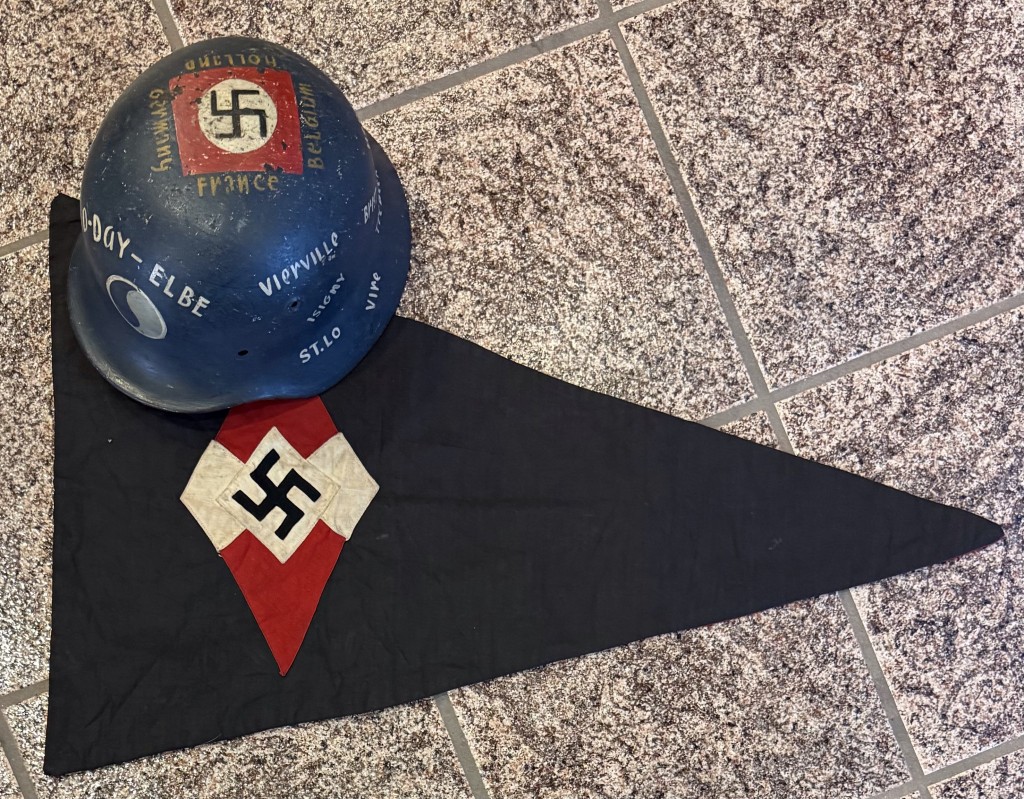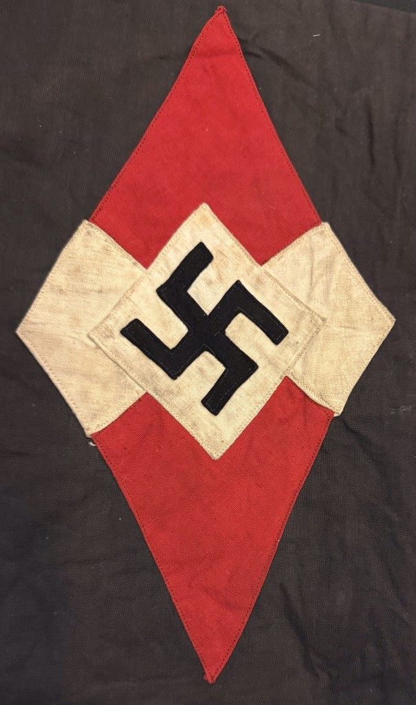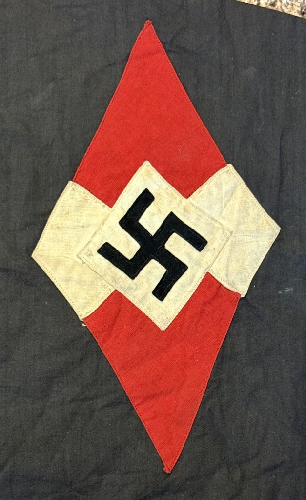 Original OUTSTANDING RARE German NSDAP (NAZI PARTY) League Of German Girls (BDM) Hitler Youth Pennant CertifiedThe League of German Girls or Band of German Maidens. (German: Bund Deutscher Mädel, abbreviated as BDM) was the girls’ wing of the Nazi Party youth movement, the Hitler Youth. It was the only legal female youth organization in Nazi Germany. At first, the League consisted of two sections: the Jungmädelbund (“Young Girls’ League”) for girls aged 10 to 14, and the League proper for girls aged 14 to 18. In 1938, a third section was introduced, the BDM-Werk Glaube und Schönheit (“Faith and Beauty Society”), which was voluntary and open to girls between the ages of 17 and 21. Young Women and girls were encouraged to Make Nazi Patriotic craft projects like this. A very interesting and rare Pennant flag Very skillfully constructed! Multi-piece construction. very unique measures about 30″ in length. (see photos) BDM Girls were encouraged to make items like this, Nice example showing the expected age some slight loss 100% Guaranteed to be authentic in good condition an outstanding example. With district symbol on the reverse. Don’t miss this one! Complete museum documentation (COA) Provided. Certified by The Gettysburg Museum of History. The Gettysburg Museum of History does not support or condone Adolf Hitler or the Nazi Party and is only offering this as a historic relic. Please see our other items. Also note when browsing our web site there are several pages of items, at the bottom of the list look for other page numbers. . OUTSTANDING EXAMPLE! Don’t Miss It!!!! RARE, VERY EARLY Good Condition!