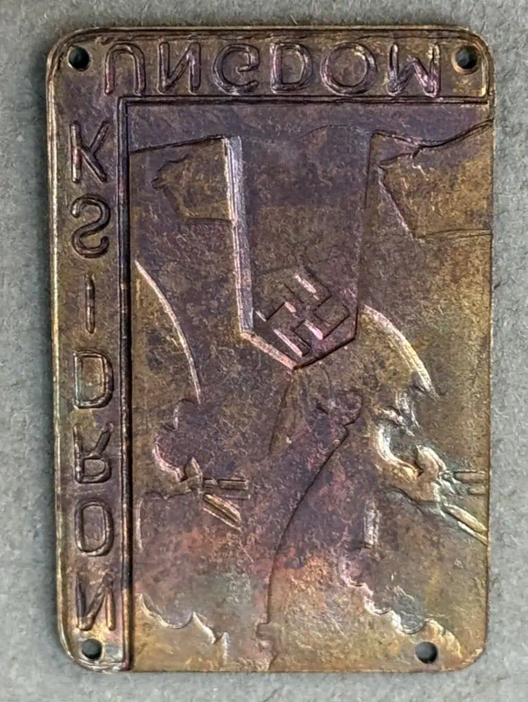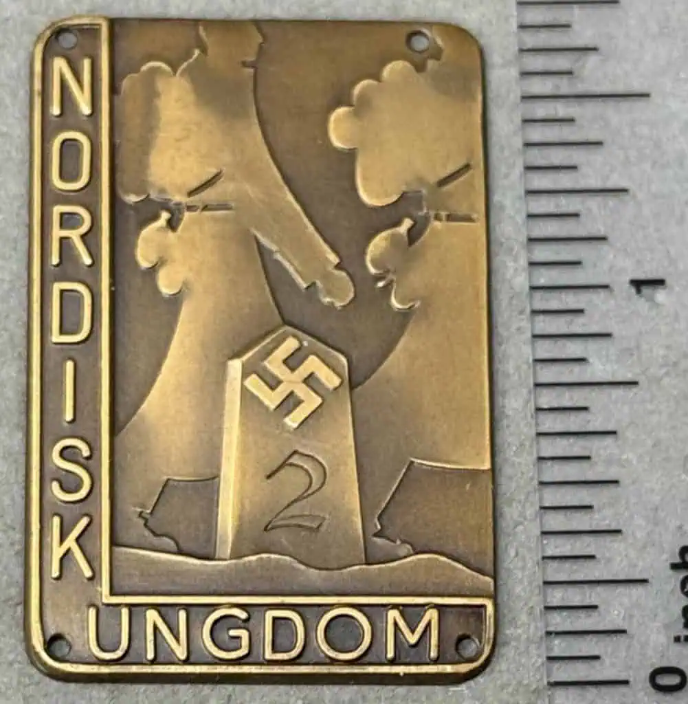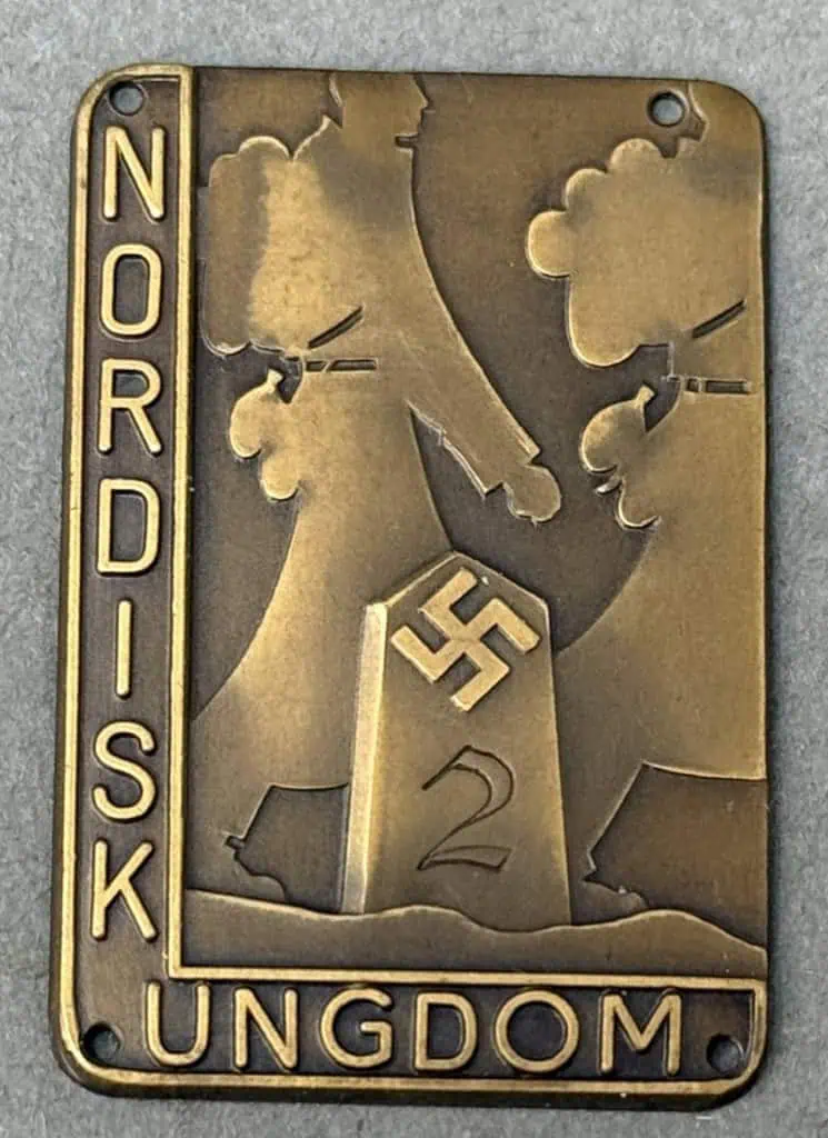 Original VERY RARE NSDAP (Nazi) Svenska Nationalsocialistiska Partiet Nordisk Ungdom “2” Plaque Certified