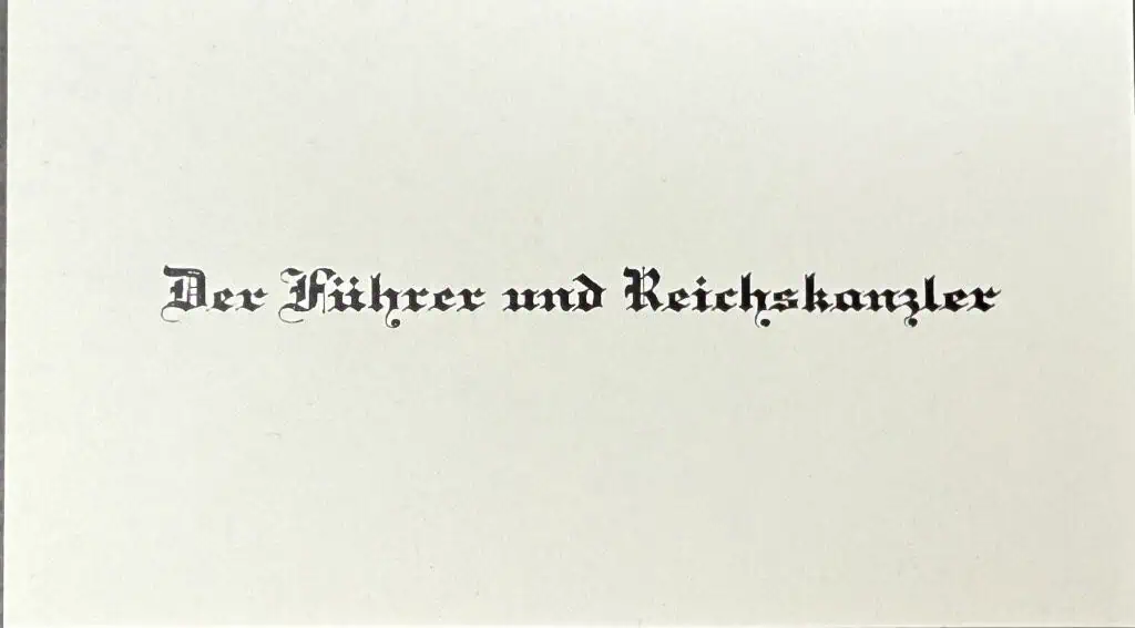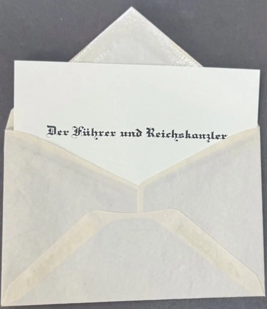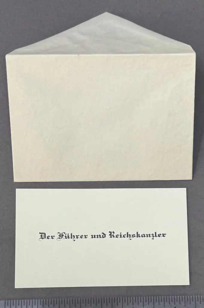 Original Very Rare Style Adolf Hitler’s Personal Calling Card With Envelope Taken By A U.S. Veteran Certified By The Gettysburg Museum Of History