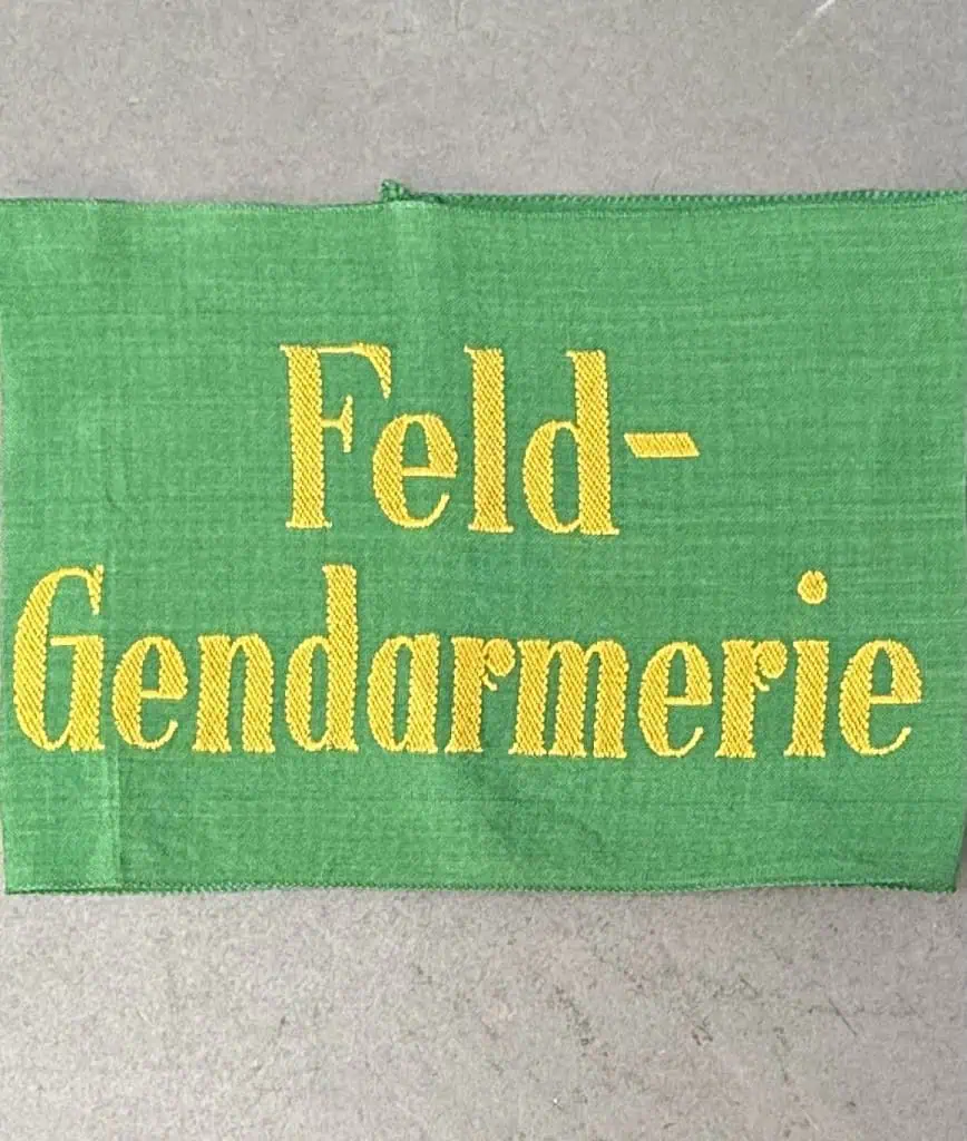 Original VERY RARE WWII German Army Feldgendarmerie, (Military Field Police) Armband (Ärmelbinde). The Feldgendarmerie, (Military Field Police), units were established on mobilization of the army in August 1939 and drew the majority of its personnel from the civil Ordnungspolizei, (Order Police), as they were already familiar with policing regulations and tasks. The Feldgendarmerie were assigned a wide variety of tasks that included, military traffic control, maintaining discipline and compliance of orders of the troops, the apprehension of stragglers and deserters, escorting POW’s, control of the civilian population, securing communication and supply lines, anti-partisan suppression and control of any disorder in the occupied rear areas of battle among other duties. The Feldgendarmerie were also empowered with the authority to perform location and personal searches and could demand required assistance from any military or civilian personnel. The Feldgendarmerie’s authority extended to the point that Feldgendarmerie’s ranks out-ranked similar military personnel’s ranks. As an expedient measure the Feldgendarmerie personnel originally wore police uniforms with army insignia added but by late 1939 or early 1940 they were issued army uniforms with distinct identifying insignia including a duty Gorget, a cufftitle and a police sleeve badge for wear by all ranks. When required Feldgendarmerie personnel were authorized to enlist EM/NCO’s from other branches of service to temporarily assist them in their policing duties. When EM/NCO’s from other branches of service were enlisted to assist the Feldgendarmerie they were supplied with an identifying armband for wear on the upper left sleeve of the field blouse or greatcoat. The armband was only worn during active policing duties and was to be returned to the Feldgendarmerie issuing authority on completion of the service.  Roughly, 13cm tall, 36cm long, woven, mid-green rayon construction armband with embroidered woven, black, Latin script in two lines to the obverse, “Feld-Gendarmerie”, (Military Field Police), in yellow threads. Both the top and bottom edges of the armband have interwoven rows of reinforcement stitching and the reverse of the armband has a machine stitched, central, vertical, seam. Rare to see in machine embroidered as most where machine   In good condition, good colors. NEAR MINT  Nice U.S. Veteran bring back arm band.   Gettysburg Museum Certified (COA) provided. Rare100% Guaranteed to be authentic. Sold for historic purposes only. See our other pieces on our web site.   Also note when browsing our web site there are several pages of items, at the bottom of the list look for other page numbers. A VERY SCARCE ARMBAND!