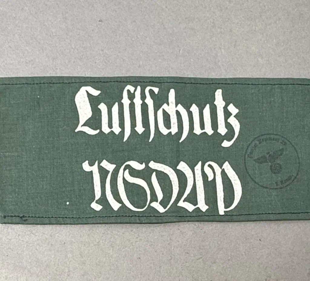 Original VERY RARE WWII German NSDAP (NAZI PARTY) Luftschutz Armband with Ink Stamp Certified