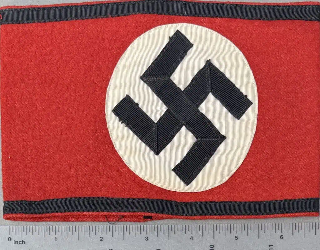 Original WWII Deluxe Nazi German SS Multi-Piece Construction Armband With Cloth SS-RZM Tag in almost MINT condition. Some very slight storage wear in used but almost mint condition. Deluxe version of the SS Nazi Arm Band. The most recognizable pieces of insignia associated with the Nazi regime is the swastika armband. Utilized by pretty much by all the organization of the Third Reich in one form or another. The swastika, (a Sanskrit word meaning “well being”), is an ancient symbol that was utilized in numerous diverse cultures and signified both the cycle of life and the sun. The swastika was also a Nordic rune and the pagan Germanic symbol for Thor, God of Adventurers. A high quality wool cloth materiel. approximately 9cm diameter rayon blend white disk, and high quality multi-piece swastika. With BLACK SS Rayon stipe at top and bottom. Has the original CLOTH SS-RZM TAG! (see photos) . A nice high quality example. A very good earlier example. Gettysburg Museum Certified (COA) provided. Rare 100% Guaranteed to be authentic, Sold for historic purposes only. See our other pieces on our web site. Also note when browsing our web site there are several pages of items, at the bottom of the list look for other page numbers. Do not miss this one! OUTSTANDING EXAMPLE GOOD ALMOST MINT CONDITION! SS items are very rare and desirable to collectors, and outstanding examples like this rarely come up for sale! VERY DESIRABLE WITH TAG!
