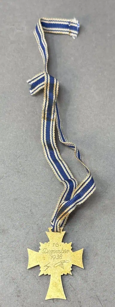 Original WWII Era German Mother’s Cross Ehrenkreuz der Deutschen Mutter In Gold Certified