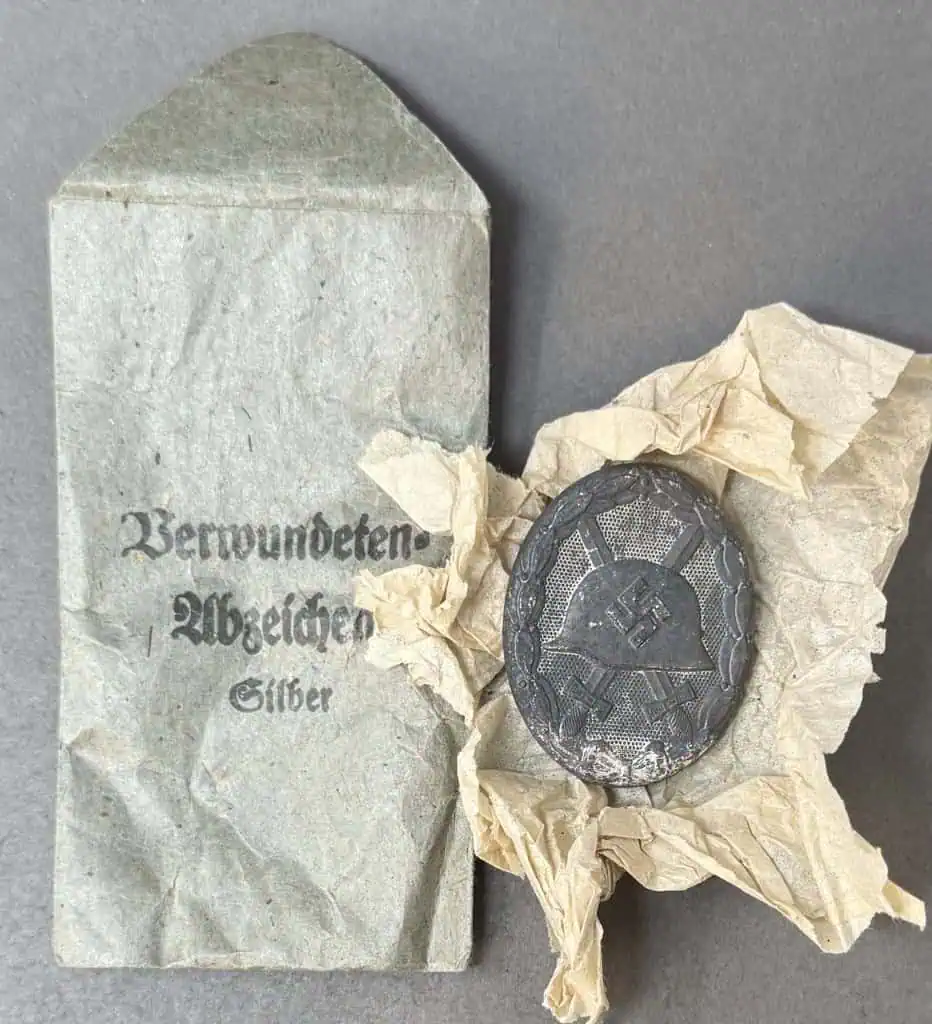 Original WWII German 1939 Silver Wound Badge WITH RARE ENVELOPE Awarded For Wounds In Combat Certified