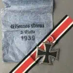 WWII German 40 Year FAITHFUL SERVICE Medal Brought Home By A U.S. Veteran Certified. On January 30th, 1938, Hitler instituted the Faithful Service Decoration, in three classes, to recognize long-serving civil servants and public works personnel. The decorations were intended to be an incentive for the civilian population to foster workplace loyalty and create a stable civil service. A second class, die struck alloy decoration with gold wash plated highlights, a frosted gold finish and a black enamel swastika. The decoration is in the form of a cross Pattée with a circular oak-leaf wreath extending between the arms of the cross. The center of the cross has a square plate with a black enameled static swastika to the obverse, and the embossed Gothic script to the reverse, “Für treue Dienste” (For Loyal Service). The arms of the cross have a slightly textured background field with a smooth, dual stepped, raised outer edge. Complete with original ribbon and pinback devise. Typical age toning and some storage wear. A very nice example. Gettysburg Museum Certified (COA) provided. Rare 100% Guaranteed to be authentic. Sold for historic purposes only. See our other pieces on our web site. Also note when browsing our web site there are several pages of items, at the bottom of the list look for other page numbers. A rare artifact. Near mint!