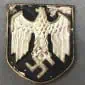 Original WWII German Army (Heer) EM/NCO M-36 Breast Eagle Certified. The German army originally adopted a slightly modified version of the NSDAP’s national eagle by order on February 17TH 1934, with instructions to have it applied to all steel helmets, visor caps, and tunics by May 1ST 1934. Later amendments to the introductory order stipulated that the national eagle was also to be worn on all field caps, the sports uniform and the black panzer wrap. The eagle came in three distinct designs with two having slightly different out-stretched wings and the third with down-swept wings. Generally Officer’s ranks utilized hand or machine embroidered breast eagles while EM/NCO’s ranks utilized machine embroidered or woven breast eagles. The early, standard issue, EM/NCO’s M36 breast eagles were in white threads and were to be abolished in 1939 to be replaced with a less visible grey M39 breast eagle but the changeover was never fully completed. This pattern was primarily utilized on the service dress uniform and the M35 dress tunic but it can also be encountered on field blouses. Early, M36 pattern, machine woven breast eagle in light grey threads on a cut-out, woven blue/green rayon base. In good uniform removed condition with some storage wear. Complete museum documentation (COA) Provided. Certified by The Gettysburg Museum of History. 100% guaranteed to be authentic. The Gettysburg Museum of History does not support or condone Adolf Hitler or the Nazi Party and is only offering this as a historic relic. Please see our other items. Also note when browsing our web site there are several pages of items, at the bottom of the list look for other page numbers NICE USED UNIFORM REMOVED EXAMPLE!