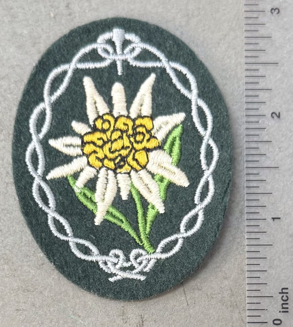 Original WWII German Army (Heer) MOUNTAIN TROOP SLEEVE EDELWEISS. (Gebirgsjäger Edelweiss Ärmelabzeichen) Certified