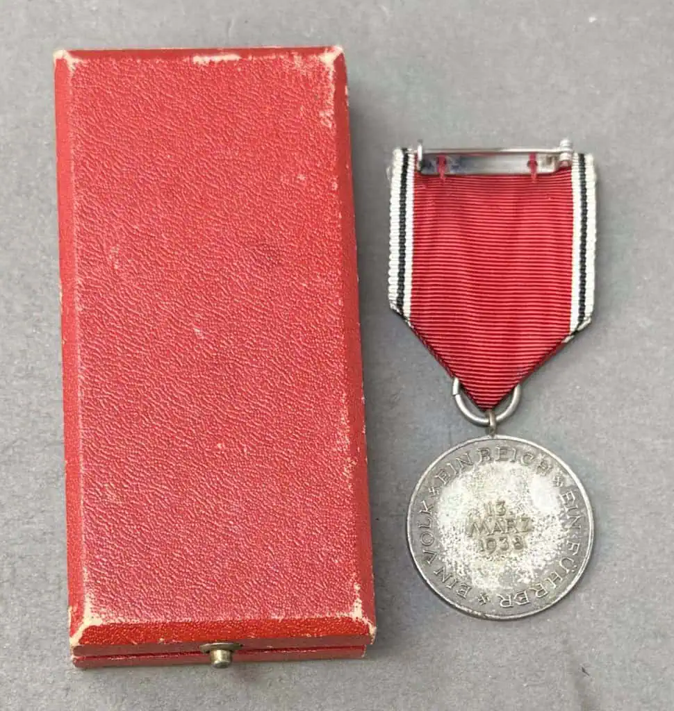 Original WWII German CASED COMMEMORATIVE MEDAL OF 1ST March 13, 1938 Certified