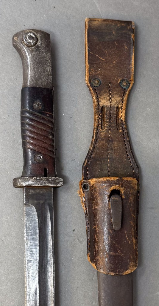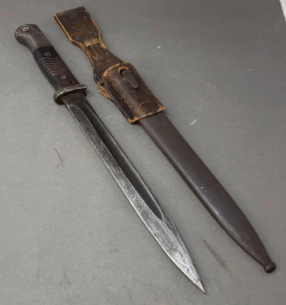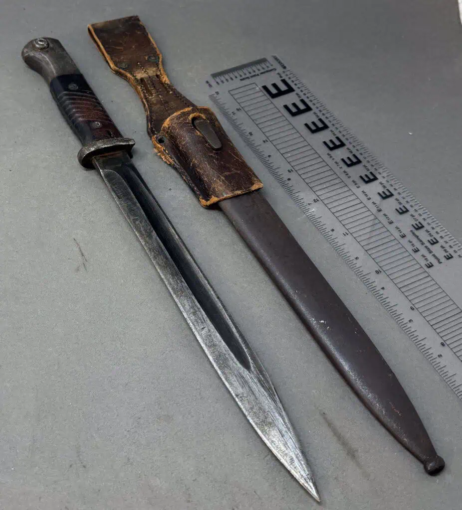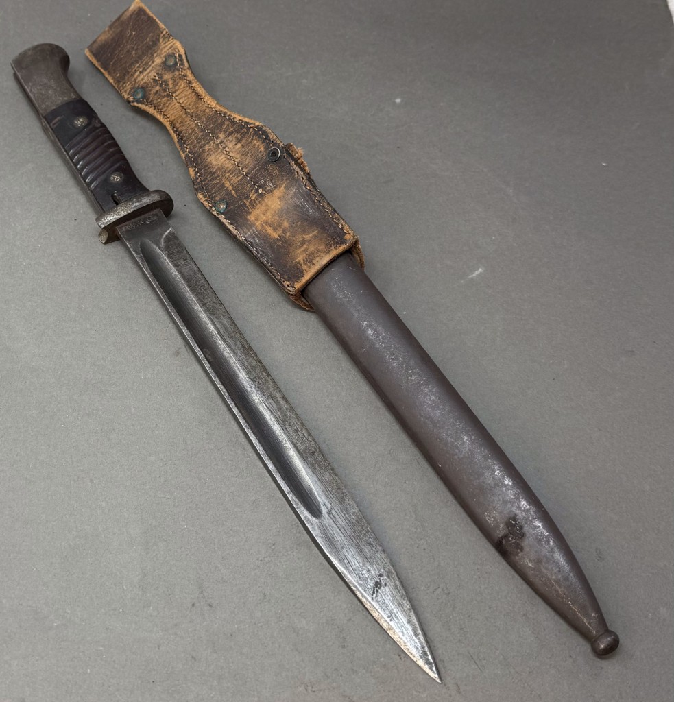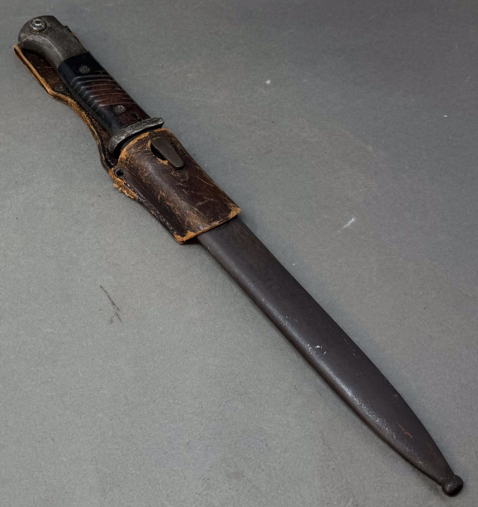 Original WWII German K98 COMBAT BAYONET (Seitengewehr 98K) Maker Marked With Leather Frog Certified