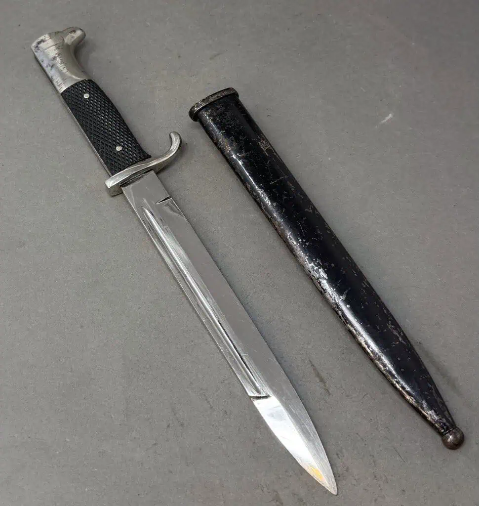 Original WWII German K98 NCO PARADE BAYONET. (Seitengewehr 98K) With leather frog Certified. The K98 bayonet was a modification of the already modified S84/98 bayonet that had been originally developed in 1915. Manufacture of this new modified bayonet began in 1934 with mass production beginning in 1936. The K98 bayonet was a standard issue item and was accompanied by a bayonet frog to be worn on the reverse left side of the weight bearing waist belt. The K98 bayonet remained the standard issue bayonet through-out the war with minor manufacturing variations. As the war continued the quality of the bayonets deteriorated and in mid-1944 most manufacturers discontinued producing the bayonet to concentrate on producing other essential war materials. Roughly 25cm long, drop forged, steel construction nickel plated blade and hardware with wide fullers with Scabbard and blade has a great look. Nice checkered grip . Stud does not move properly. Some loss to the finish on the scabbard.. The scabbard in used condition. (see Photos) Overall very good but used example. 100% Guaranteed to be authentic Complete museum documentation (COA) Provided. Certified by The Gettysburg Museum of History. Please see our other items. Also note when browsing our web site there are several pages of items, at the bottom of the list look for other page numbers.