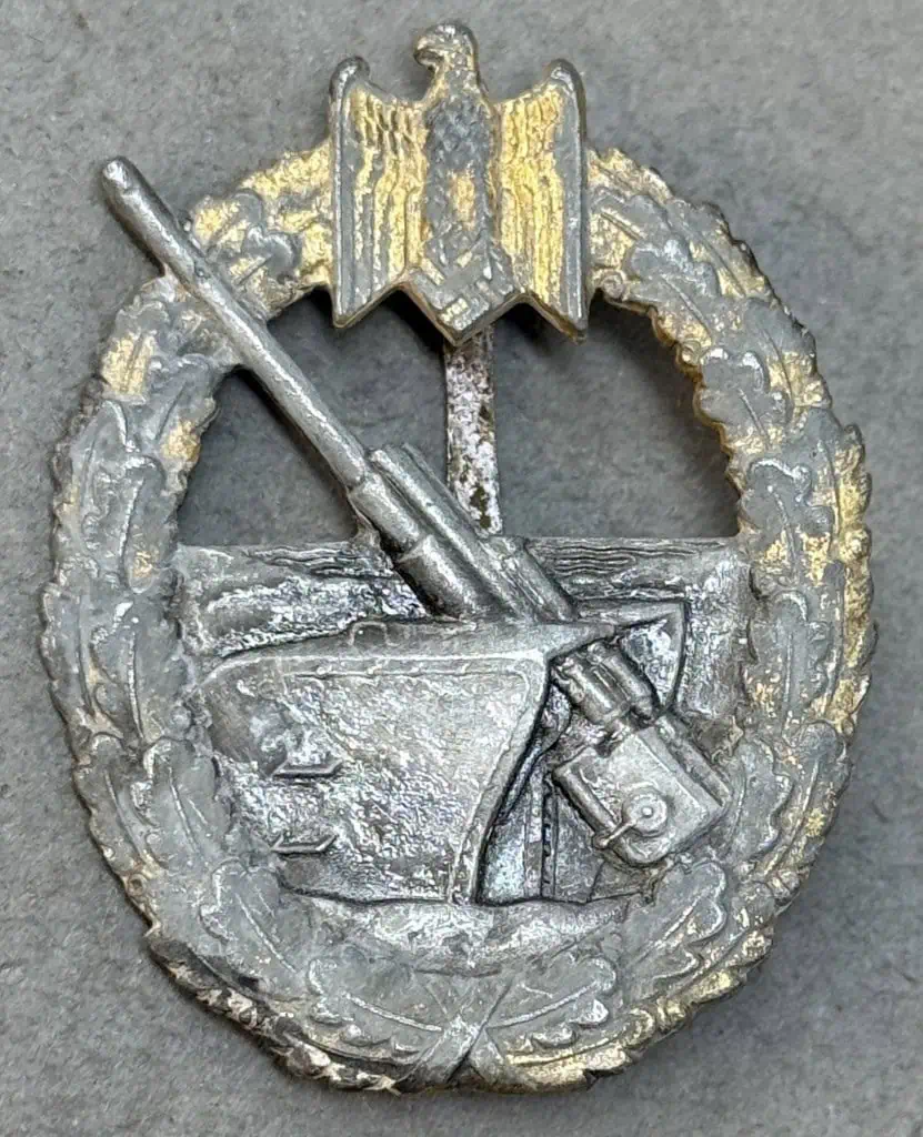Original WWII German Kriegsmarine (Navy) COASTAL ARTILLERY WAR BADGE, 1941. (Kriegsabzeichen für die Marineartillerie) Certified