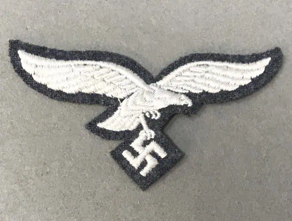 Original WWII German Luftwaffe (Airforce) Enlisted/NCO Breast Eagle (Hoheitsabzeichen) Certified. The Luftwaffe pattern national eagle was originally introduced for wear by Fliegerschaft, (Pilot Base), personnel of the DLV, Deutscher Luftsportsverband, (German Air Sports Association), the clandestine, civilian, forerunner of the Luftwaffe on August 18TH 1934 and was officially adopted for wear by all Luftwaffe personnel on March 1ST 1935. The original first pattern national eagle was utilized until a, slightly modified, second pattern national eagle was introduced in late 1936 or early 1937. Regulations dictated that the national eagle was to be worn on almost all headgear and on the right breast of almost all uniforms with a few minor exceptions. Machine embroidered, second pattern, (Circa 1936/1937-1945), Luftwaffe eagle, clutching a canted swastika in one talon, in silvery/grey rayon threads on a cut-out Luftwaffe blue/grey wool base in used but good condition. 100% guaranteed to be authentic. Complete museum documentation (COA) Provided. Certified by The Gettysburg Museum of History. The Gettysburg Museum of History does not support or condone Adolf Hitler or the Nazi Party and is only offering this as a historic relic. Please see our other items. Also note when browsing our web site there are several pages of items, at the bottom of the list look for other page numbers.