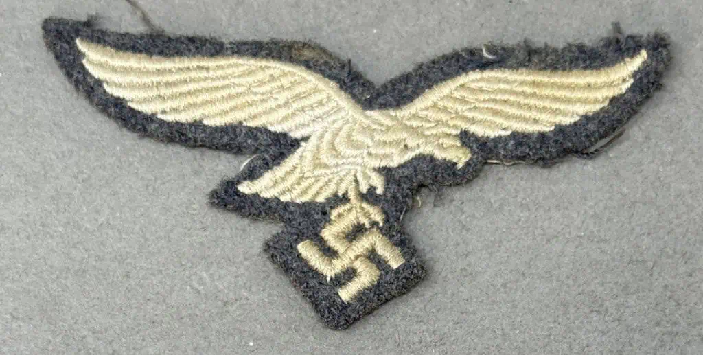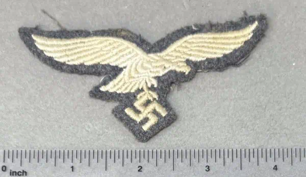 Original WWII German Luftwaffe (Airforce) Enlisted/NCO Breast Eagle (Hoheitsabzeichen) Certified. The Luftwaffe pattern national eagle was originally introduced for wear by Fliegerschaft, (Pilot Base), personnel of the DLV, Deutscher Luftsportsverband, (German Air Sports Association), the clandestine, civilian, forerunner of the Luftwaffe on August 18TH 1934 and was officially adopted for wear by all Luftwaffe personnel on March 1ST 1935. The original first pattern national eagle was utilized until a, slightly modified, second pattern national eagle was introduced in late 1936 or early 1937. Regulations dictated that the national eagle was to be worn on almost all headgear and on the right breast of almost all uniforms with a few minor exceptions. Machine embroidered, second pattern, (Circa 1936/1937-1945), Luftwaffe eagle, clutching a canted swastika in one talon, in silvery/grey rayon threads on a cut-out Luftwaffe blue/grey wool base. Uniform removed eagle in used but good condition. From a U.S. Veteran.  100% guaranteed to be authentic. Complete museum documentation (COA) Provided. Certified by The Gettysburg Museum of History. The Gettysburg Museum of History does not support or condone Adolf Hitler or the Nazi Party and is only offering this as a historic relic. Please see our other items.  Also note when browsing our web site there are several pages of items, at the bottom of the list look for other page numbers. Nice uniform cut off  U.S. Veteran bring-back.