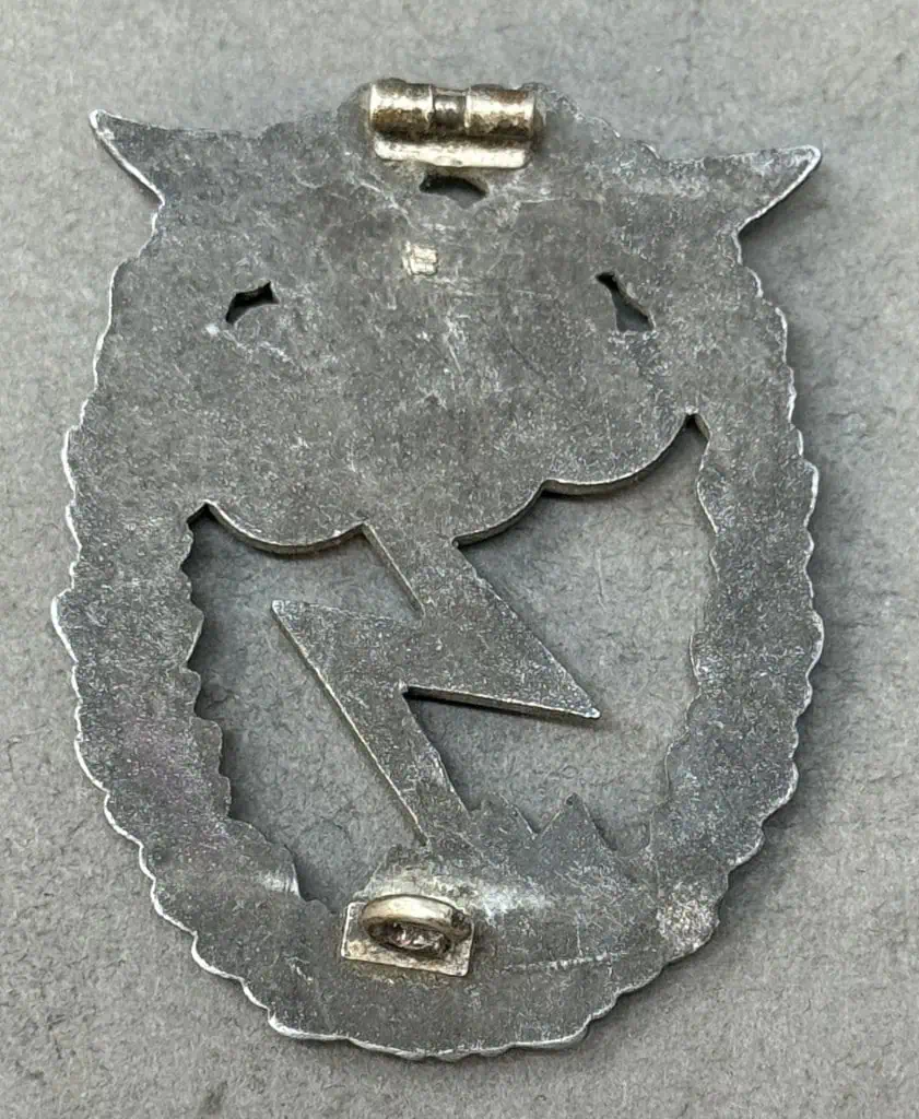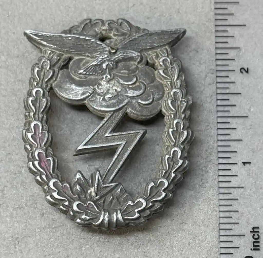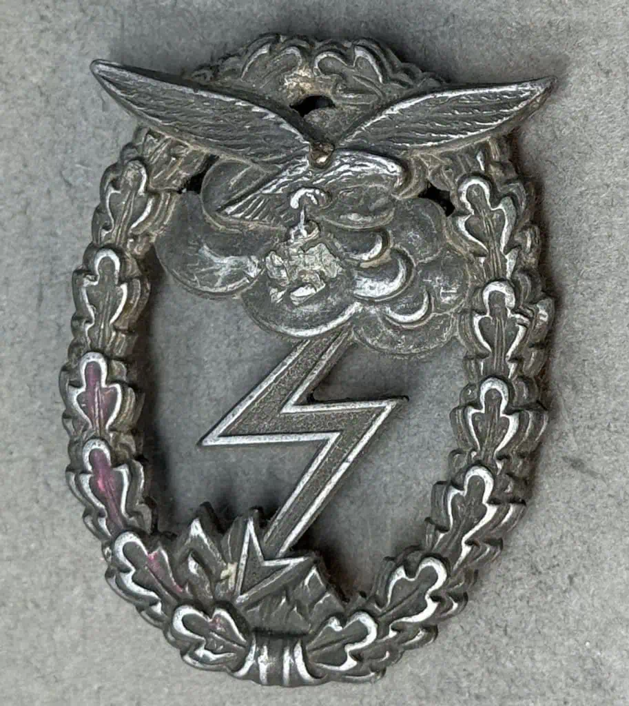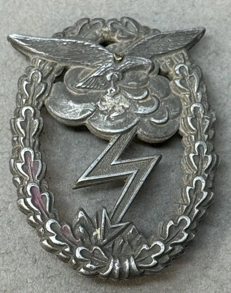 Original WWII German Luftwaffe (Airforce) GROUND COMBAT BADGE. (Erdkampfabzeichen der Luftwaffe) Certified. In late 1941 the first Luftwaffe ground combat units were hastily formed to help replace the massive loss of men on the Eastern front, followed by the formation of the Brigade Meindl consisting of five Luftwaffe Field Battalions in February 1942. As a result of the formation of these new ground combat units Reichsmarschall Hermann Göring established the Luftwaffe Ground Combat Badge on March 31ST 1942, for award to all Luftwaffe personnel who had distinguished themselves in ground combat. Certain criteria had to be met for award of the badge with the main criteria being three separate ground combat actions. Of Note: Since the Luftwaffe had excess personnel on September 17TH 1942 Göring announced the formation of new Luftwaffe field divisions also to replace the massive loss of men on the Eastern front. Due to the lack of training and poor performance in the field, of the twenty-two divisions formed, seventeen were either destroyed or disbanded before the end of the war. Also Of Note: On introduction of the Ground Combat Badge, Luftwaffe personnel who had been awarded the Infantry, Panzer or General Assault badges previously, were required to exchange them for this badge. Prior to the introduction of this Ground Combat Badge, Flak personnel who had utilized their Flak guns against land or sea-based targets three times were awarded the Flak War Badge. These personnel also exchanged their Flak War Badge for the Ground Combat Badge. Late war, single piece, injection molded alloy construction, solid backed badge is in the form of a vertically oval, oak-leaf wreath with a Luftwaffe style eagle, clutching a canted swastika in one talon, superimposed to the top center, encompassing a cut-out, dark, burnished matte grey washed cloud and downward striking, blitz style, lightning bolt. The solid reverse Has  an integral, molded, heavy but is missing the pin! PRICED Accordingly Shows the expected age, wear and use.  In good but used condition. Gettysburg Museum Certified (COA) provided. 100% Guaranteed to be authentic. Sold for historic purposes only. See our other pieces on our web site. Also note when browsing our web site there are several pages of items, at the bottom of the list look for other page number! GOOD EXAMPLE! nut missing pin DON’T MISS IT!