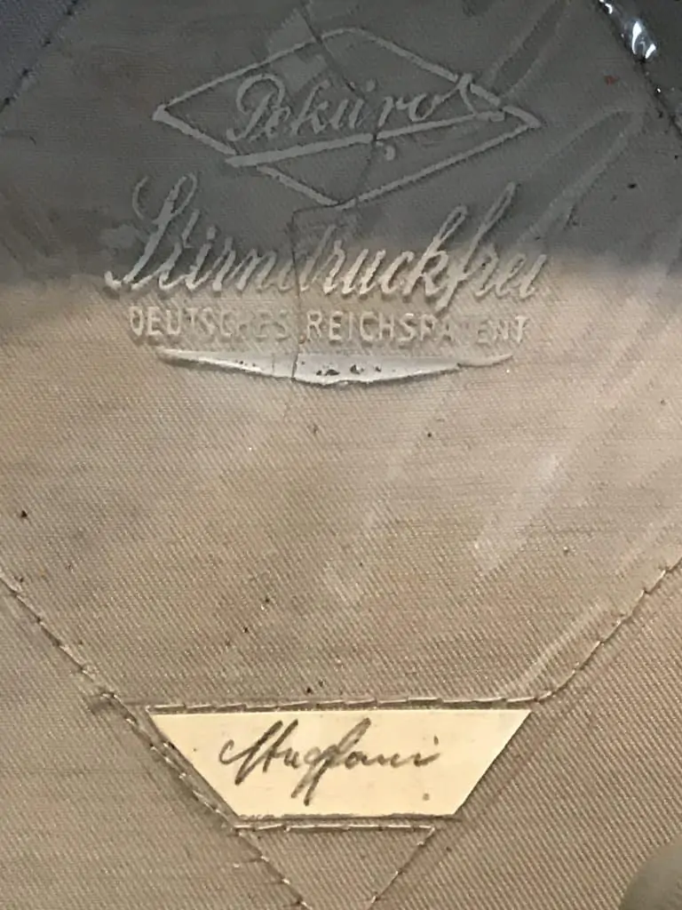 Original WWII German Luftwaffe (Airforce) OFFICER’S VISOR CAP. (Schirmmütze) Brought Home By A U.S. Veteran Certified. Luftwaffe blue/grey, wool/rayon blend construction visor cap with a very subtle, whipcord weave features a black, horizontally ribbed, interwoven, mohair centerband, and bright, interwoven silver/aluminum piping to the crown edge and both the top and bottom edges of the centerband. Has one small moth nip (see photos) very light and barely visible. The front center of the cap has a hand embroidered, second pattern, Luftwaffe eagle in bright silver/aluminum wire threads with bright silver/aluminum bullion accent threads on a cut-out, Luftwaffe blue/grey wool base. The eagle is neatly handstitched to the cap. The front center of the centerband has a hand embroidered, winged, oak-leaf wreath in silver/aluminum wire threads, encompassing a hand embroidered national tri-color cockade. The wreath has grey and black accent threads and the national tri-color cockade is constructed in black and silver/aluminum wire threads with an a central, red wool dot. The winged wreath and cockade are mounted on a cut-out black wool base which is also hand stitched in place. The cap has an interwoven, twisted, silver/aluminum, braid, chin cord which is secured to the cap by two, small, silver washed, pebbled, alloy buttons. The cap has an extended, forward, black lacquered, vulcanfibre visor with stitched on, simulated leather trim to the forward edge. The interior of the cap is fully lined in two grades of gray cotton/rayon blend. The interior of the cap has a complete leather sweatband. A period paper as found rolled up inside the sweatband placed by the original Officer to make it fit more snug (see photos). Name of the Officer inside. Roughly a size 57. Repaired example. This cap has serious moth issues and was repaired using period Luftwaffe gray material back in the 1980’s (see photos priced accordingly) Nice repaired display cap. Repaired example showing the expected age and wear overall good repaired condition. Gettysburg Museum Certified (COA) provided. 100% Guaranteed to be authentic brought home by a U.S. Veteran. Sold for historic purposes only. See our other pieces on our web site. Also note when browsing our web site there are several pages of items, at the bottom of the list look for other page numbers. Great artifact! don’t miss it! REPAIRED CONDITION! A great authentic display piece for a fraction of the cost.