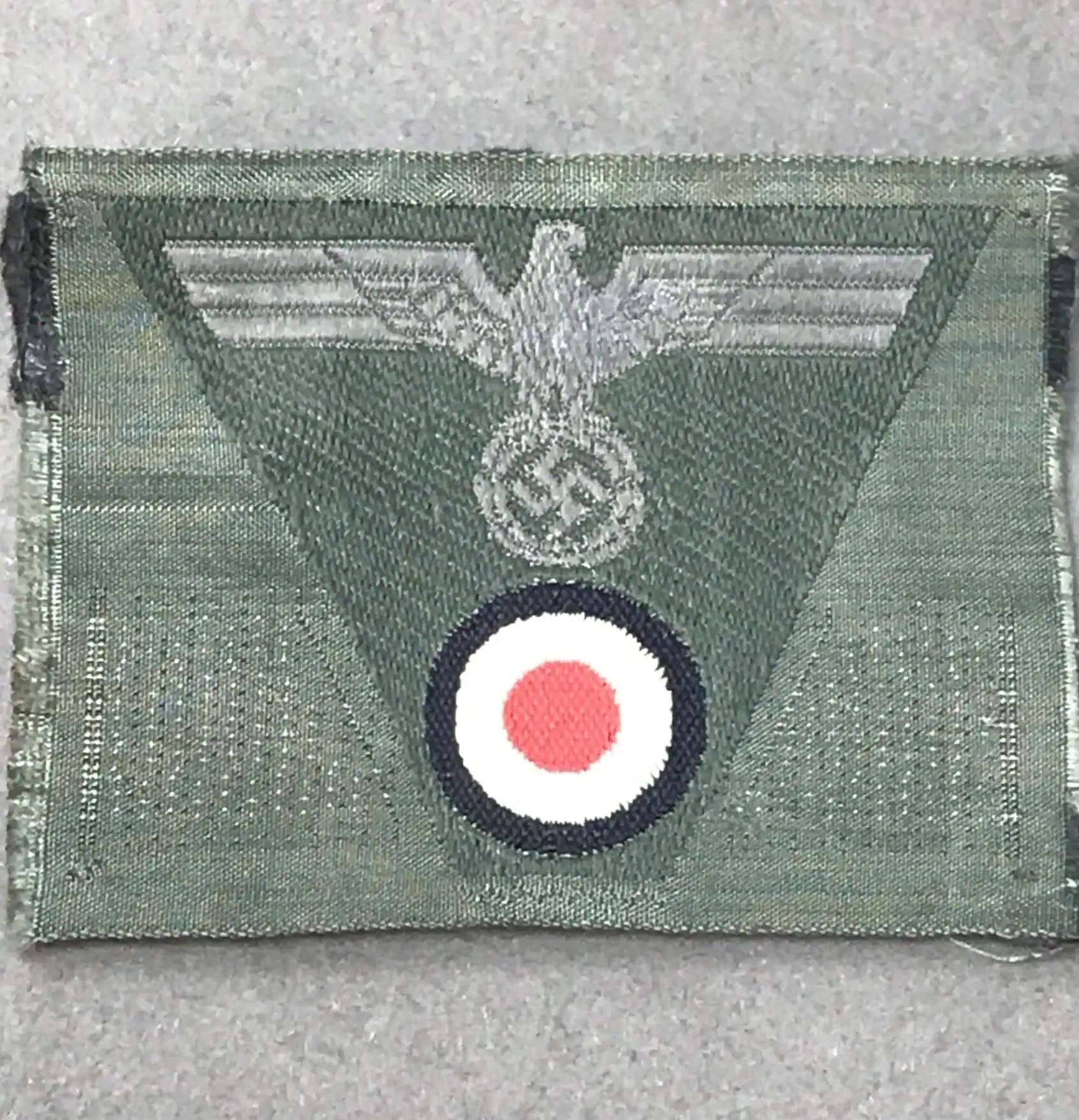 Original WWII German NS-RKB MEMBER’S BREAST EAGLE. (NS-RKB Hoheitsabzeichen) Certified. The DRKB, Deutscher Reichskriegerbund (Kyffhäuserbund), (German National Association of Veterans, Kyffhäuser Association), was formed during WWI, and was based on the DKB, Deutscher Kriegerbund (German Veterans Association), originally formed after the war of 1870-71. The addition of “Kyffhäuser” in the associations name referred to the Kyffhäuser mountain where a large war memorial had been erected. The goal of the association was to preserve the morale and comradeship of former soldiers and to financially assist its members if required. On March 29TH 1938 the DRKB was renamed NS-RKB, Nationalsozialistische-Reichskriegerbund, (National Socialist-State Soldiers League), by the NSDAP and amalgamated with most of the earlier veteran’s associations into one national organization. Uniform and headgear regulations of the DRKB/NS-RKB were introduced prior to 1933 and were modified again in 1936 and 1938. The 1938 uniform modifications introduced a new pattern national eagle for wear on the breast and the visor cap. The new eagle was almost identical to the earlier, (circa 1936), Soldatenbund, (Soldiers League), eagle but had the eagle facing to its left as opposed to the right facing Soldatenbund eagle. Injection molded aluminum construction left facing national eagle with a silver wash. The eagle features out-stretched wings and is clutching a wreathed, canted, swastika in its talons. The eagle has an Iron Cross superimposed over crossed swords on its breast. The reverse of the eagle is a mirror image of the obverse. The reverse has a crimped hinge inset into a recess with crimped retainers, a thin round horizontal pin and a catch also inset into a recess with crimped retainers. The reverse is well marked with embossed maker code numeral and, “Ges. Gesch.”, indicating, Gesetzlich Geschützt, (Protected by Law). Excellent example. Some slight wear and expected issues. 100% Guaranteed to be authentic. Complete Museum documentation (COA) Provided. Certified by The Gettysburg Museum of History. The Gettysburg Museum of History does not support or condone Adolf Hitler or the Nazi Party and is only offering this as a historic relic. Please see our other items. Also note when browsing our web site there are several pages of items, at the bottom of the list look for other page numbers. NICE BIG EAGLE!