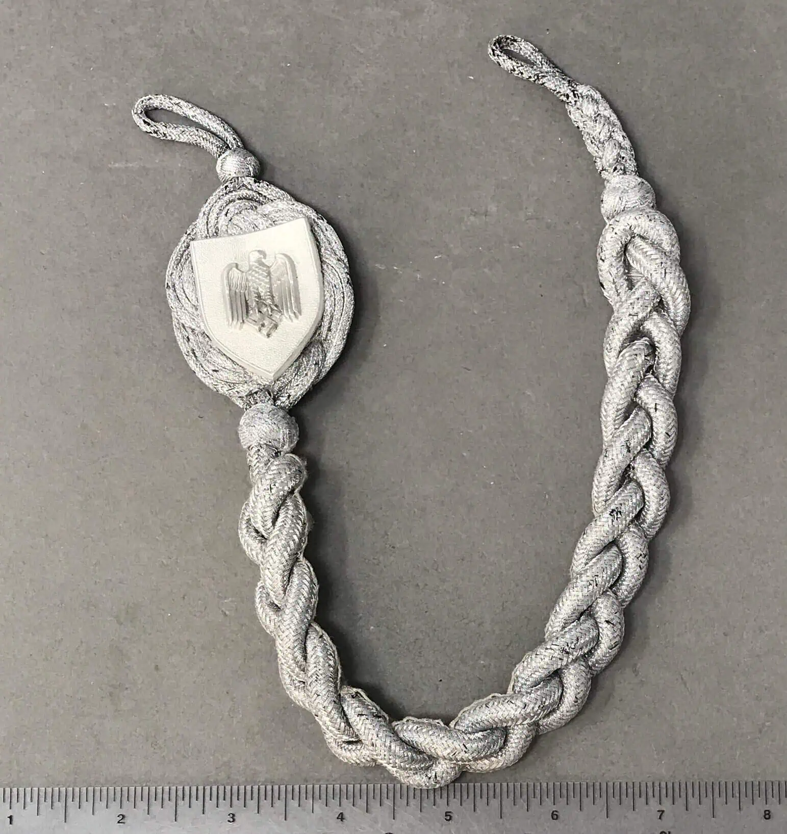 Original WWII German NS-RKB MEMBER’S CAP EAGLE. (NS-RKB Hoheitsabzeichen) Certified. The DRKB, Deutscher Reichskriegerbund (Kyffhäuserbund), (German National Association of Veterans, Kyffhäuser Association), was formed during WWI, and was based on the DKB, Deutscher Kriegerbund (German Veterans Association), originally formed after the war of 1870-71. The addition of “Kyffhäuser” in the associations name referred to the Kyffhäuser mountain where a large war memorial had been erected. The goal of the association was to preserve the morale and comradeship of former soldiers and to financially assist its members if required. On March 29TH 1938 the DRKB was renamed NS-RKB, Nationalsozialistische-Reichskriegerbund, (National Socialist-State Soldiers League), by the NSDAP and amalgamated with most of the earlier veterans’ associations into one national organization. Uniform and headgear regulations of the DRKB/NS-RKB were introduced prior to 1933 and were modified again in 1936 and 1938. The 1938 uniform modifications introduced a new pattern national eagle for wear on the breast and the visor cap. The new eagle was almost identical to the earlier, (circa 1936), Soldatenbund, (Soldiers League), eagle but had the eagle facing to its left as opposed to the right facing Soldatenbund eagle. Injection molded aluminum construction left facing national eagle with a silver wash. The eagle features out-stretched wings and is clutching a wreathed, canted, swastika in its talons. The eagle has an Iron Cross superimposed over crossed swords on its breast. The reverse of the eagle is a mirror image of the obverse. The reverse has 3 pins for attaching to a cap that are now gone The reverse is well marked with embossed numeral maker code number. Excellent example. Some wear and expected issues. 100% Guaranteed to be authentic Complete Museum documentation (COA) Provided. Certified by The Gettysburg Museum of History. The Gettysburg Museum of History does not support or condone Adolf Hitler or the Nazi Party and is only offering this as a historic relic. Please see our other items. Also note when browsing our web site there are several pages of items, at the bottom of the list look for other page numbers. NICE EAGLE!