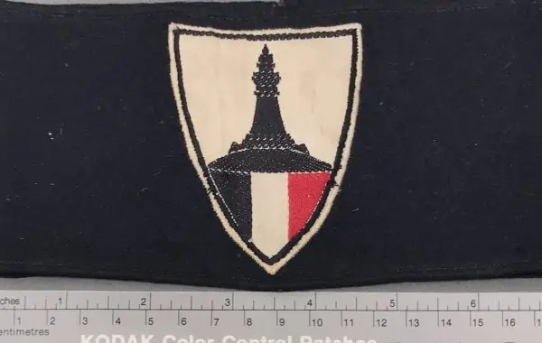 Original WWII German NSDAP (NAZI PARTY) DRKB MEMBER’S ARMBAND Certified. The DRKB, Deutscher Reichskriegerbund (Kyffhäuserbund), (German National Association of Veterans, Kyffhäuser Association), was formed during WWI, and was based on the DKB, Deutscher Kriegerbund (German Veterans Association), originally formed after the war of 1870-71. The addition of “Kyffhäuser” in the associations name referred to the Kyffhäuser mountain where a large war memorial had been erected. The goal of the association was to preserve the morale and comradeship of former soldiers and to financially assist its members if required. On March 29TH 1938 the DRKB was renamed NS-RKB, Nationalsozialistische-Reichskriegerbund, (National Socialist-State Soldiers League), by the NSDAP and amalgamated with most of the earlier veterans associations into one national organization. Uniform and headgear regulations of the DRKB/NS-RKB were introduced prior to 1933 and were modified again in 1936 and 1938. Roughly 8cm tall, 32cm long, black wool armband with second pattern, (circa 1936), machine woven Kyffhäuserbund emblem, horizontal silver/aluminum rank tress and ribbed pink rayon chevron. Shield shaped Kyffhäuserbund emblem features a black silhouette of the Kyffhäuser monument on a white background field above a red base with small white circular field and black canted swastika. a few small moth holes on the blue wool. Nice worn and used example showing the expected age and wear. 100% Guaranteed to be authentic Brought home by a U.S. solider as a trophy of war. Complete museum documentation (COA) Provided. Certified by The Gettysburg Museum of History. The Gettysburg Museum of History does not support or condone Adolf Hitler or the Nazi Party and is only offering this as a historic relic. Please see our other items. Also note when browsing our web site there are several pages of items, at the bottom of the list look for other page numbers. Great looking but worn armband ! Don’t Miss It!