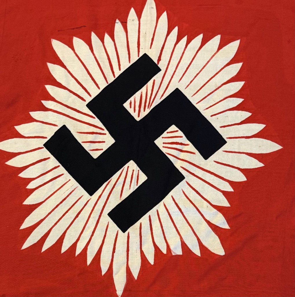 Original WWII German NSDAP (NAZI PARTY) RARE DELUXE LARGE RLB FLAG Brought Home By A U.S. Veteran Certified