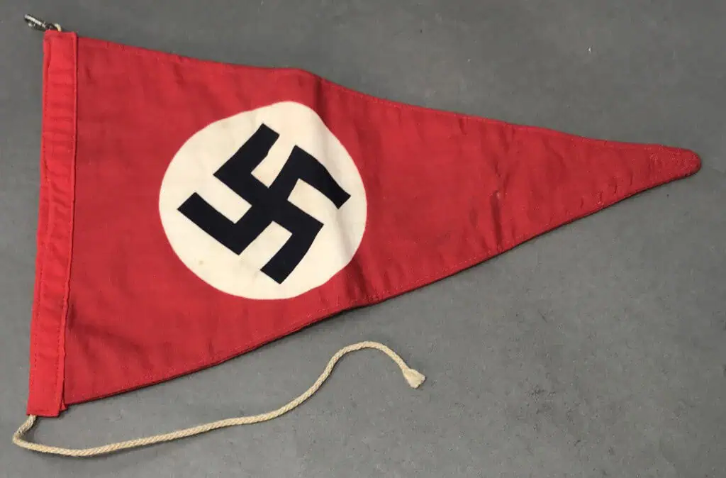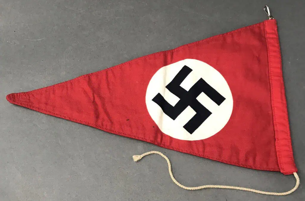 Original WWII German NSDAP (NAZI PARTY) Super High Quality VEHICLE PENNANT. (Wimpel) Brought Home By A U.S. Veteran Certified