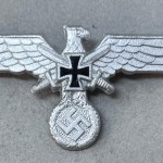 Original WWII German Police Bullion Officer’s Sleeve Eagle Certified By The Gettysburg Museum Of History. Shortly after Adolf Hitler and the NSDAP, Nationalsozialistische Deutsche Arbeiterpartei, (National Socialist German Worker’s Party), ascended to the leadership of Germany, the police, as with almost all civic organizations, incorporated the new style national eagle and swastika on their insignia. On June 17TH 1936, Reichsführer-SS Heinrich Himmler was appointed to the newly created position of Chef der Deutschen Polizei im Reichsministerium des Innern, (Chief of the German Police in the National Ministry of the Interior), effectively giving him full control of all police agencies within Germany. As a result of this appointment and the restructuring of all the separate German state police into a single national police force new regulations were instituted to bring about uniformity in dress for all police through-out the country. One of the new uniform regulations was the introduction of an identifying sleeve insignia. The police were divided into eight assorted branches of service and during the restructuring the different police agencies were assigned specific identifying “truppenfarbe” (Troop {Branch of Service} Colors). NCO ranks of Unterwachtmeister to Hauptwachtmeister, (equivalent to the army ranks of Unteroffizier & Oberfeldwebel, respectively), wore the sleeve insignia in the appropriate branch of service color while Officer’s ranks from Polizei Meister to Oberst wore the insignia in bright silver and the ranks of Generalmajor to Generaloberst wore gilt insignia. Originally the police sleeve eagles worn by NCO’s included the name of the location where they were stationed but regulations of November 10TH 1941 abolished the name for all but the Freiwillingen Feuerwehren, (Volunteer Fire Brigades), and the Pflichtfeuerwehren, (Compulsory Fire Brigades), personnel. Of Note: The German Police had no enlisted ranks with the lowest rank being an Unterwachtmeister which was equivalent to the German army rank of Unteroffizier. Nice quality, hand embroidered, police officer’s sleeve eagle with out-stretched wings, clutching a wreathed, canted swastika in it’s talons encompassed by a vertically oval, oak-leave wreath in bright silver/aluminum wire threads with a black rayon swastika, all mounted on a cut-out, vertically oval, police green wool base. The eagle’s wings extend beyond the edges of the oval oak-leave wreath. In overall excellent, condition. Nice example with expected used U.S. Veteran bring-back condition. A Scarce and very good looking Eagle! Gettysburg Museum Certified (COA) provided. Rare 100% Guaranteed to be authentic. Sold for historic purposes only. See our other pieces on our web site. Also note when browsing our web site there are several pages of items, at the bottom of the list look for other page numbers. RARE IN BULLION! Don’t miss it!