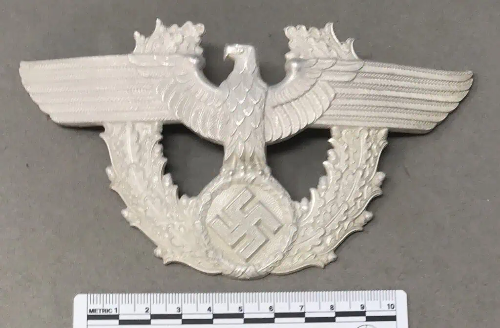Original WWII German Police Maker Marked POLIZEI NCO’S SHAKO EAGLE. (Tschako Adler) Certified