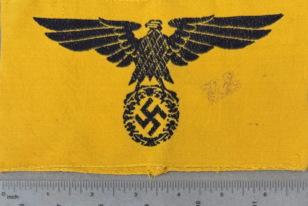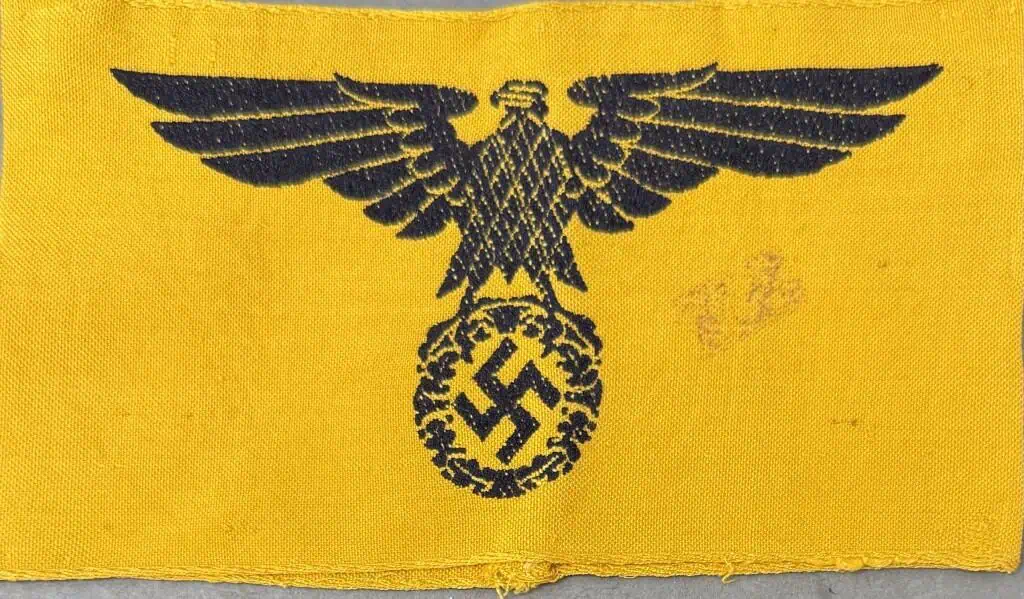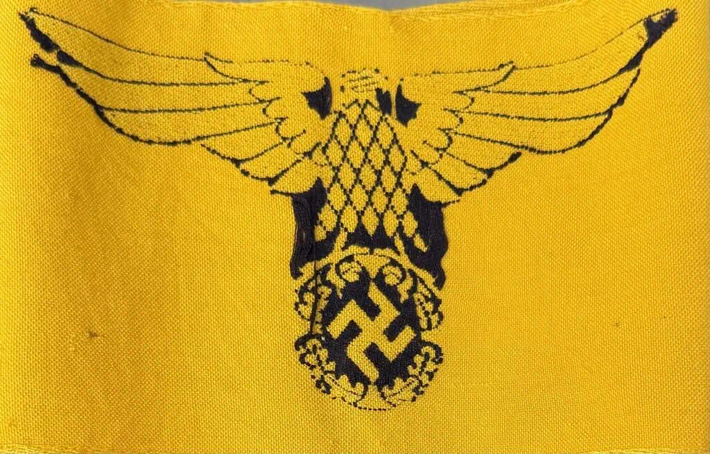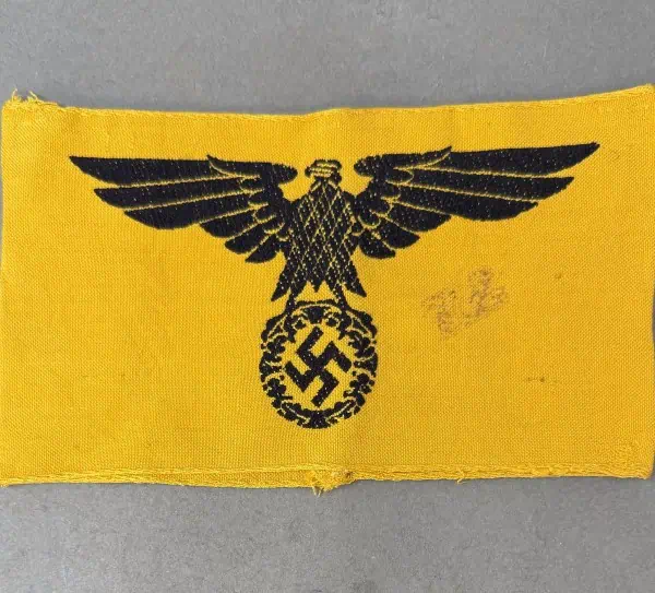 Original WWII German Service OF THE ARMED FORCES ARMBAND. (Nicht-Wehrmachtangehörige Ärmelbinde) Certified. The Army Mobilization Order of March 12TH 1937 introduced a wide variety of armbands that were worn to identify personnel performing specific duties or functions for the Armed Forces. Most of the armbands were worn on the upper left sleeve of uniformed or non-uniformed personnel and were worn only while the individual was performing the specific duty or function identified by the armband. The “Nicht-Wehrmachtangehörige”, (Non-Members of the Armed Forces), armband was one of the armbands introduced with the Army Mobilization Order of March 12TH 1937 and was designed for wear by combatants who were not members of the Armed Forces. Woven golden yellow cotton construction armband with a black, machine woven, stylized national eagle with out-stretched wings, clutching a wreathed, canted swastika in its talons to the obverse center. The top and bottom edges of the armband have interwoven rows of reinforcement stitching and the reverse of the armband has a machine stitched, vertical, seam. In good (almost mint) Condition. (see photos). Complete museum documentation (COA) Provided. Certified by The Gettysburg Museum of History. The Gettysburg Museum of History does not support or condone Adolf Hitler, or the Nazi Party and is only offering this as a historic relic. Please see our other items. Also note when browsing our web site there are several pages of items, at the bottom of the list look for other page numbers. One small smudge otherwise excellent (see photos)