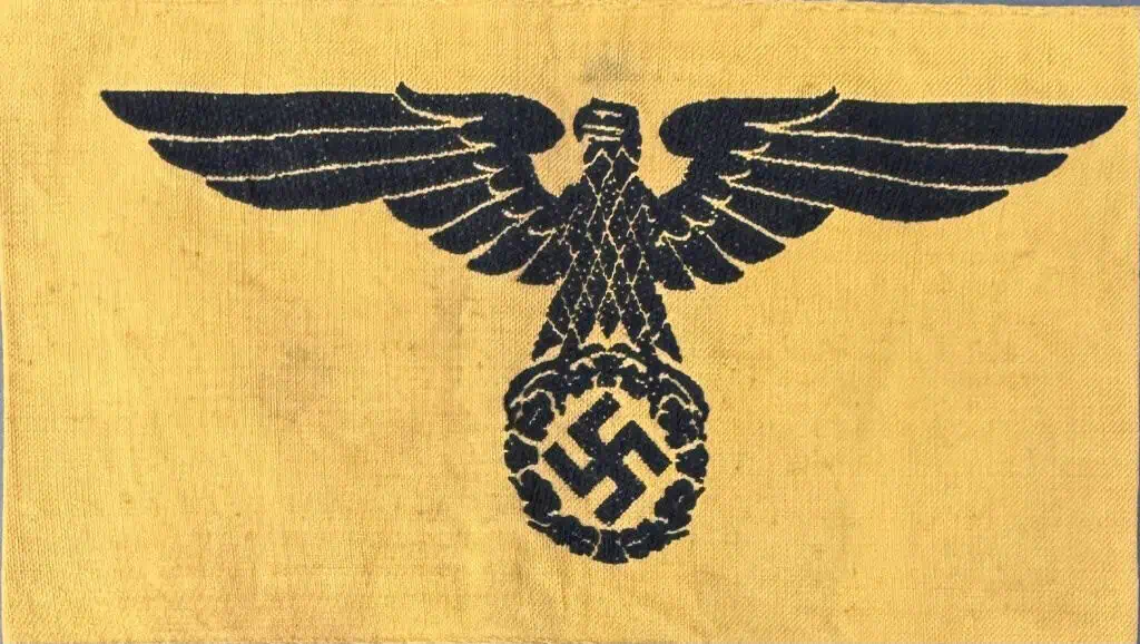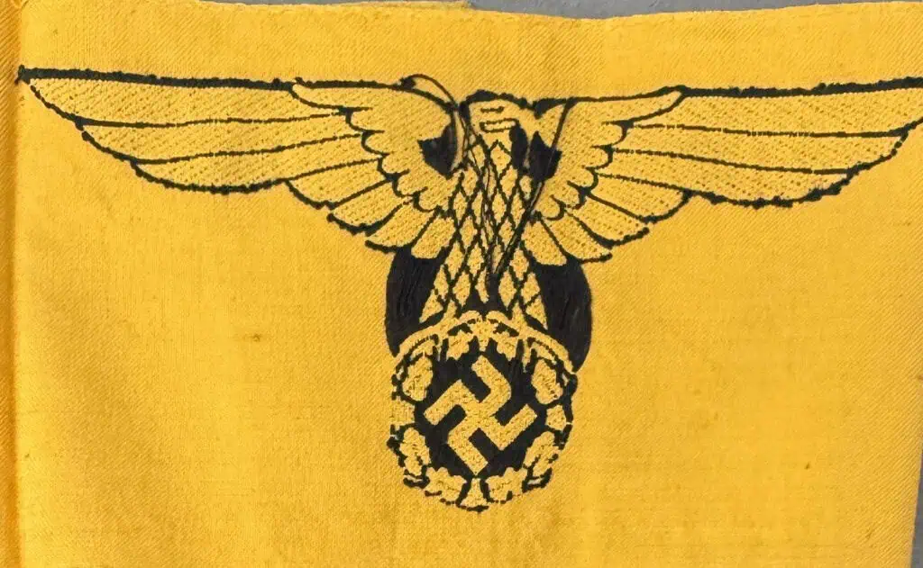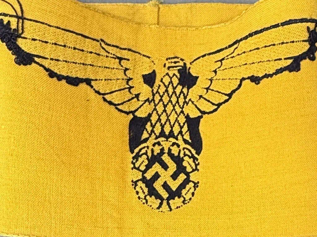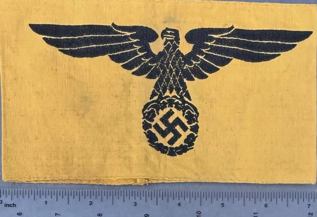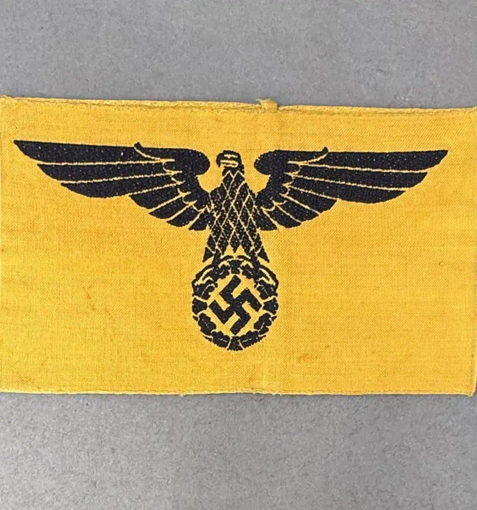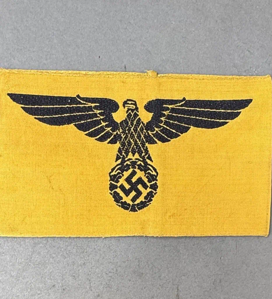 Original WWII German Service OF THE ARMED FORCES ARMBAND. (Nicht-Wehrmachtangehörige Ärmelbinde) Certified. The Army Mobilization Order of March 12TH 1937 introduced a wide variety of armbands that were worn to identify personnel performing specific duties or functions for the Armed Forces. Most of the armbands were worn on the upper left sleeve of uniformed or non-uniformed personnel and were worn only while the individual was performing the specific duty or function identified by the armband. The “Nicht-Wehrmachtangehörige”, (Non-Members of the Armed Forces), armband was one of the armbands introduced with the Army Mobilization Order of March 12TH 1937 and was designed for wear by combatants who were not members of the Armed Forces. Woven golden yellow cotton construction armband with a black, machine woven, stylized national eagle with out-stretched wings, clutching a wreathed, canted swastika in its talons to the obverse center. The top and bottom edges of the armband have interwoven rows of reinforcement stitching and the reverse of the armband has a machine stitched, vertical, seam. In good (almost mint) Condition. (see photos). Complete museum documentation (COA) Provided. Certified by The Gettysburg Museum of History. The Gettysburg Museum of History does not support or condone Adolf Hitler, or the Nazi Party and is only offering this as a historic relic. Please see our other items. Also note when browsing our web site there are several pages of items, at the bottom of the list look for other page numbers. Slight soiling for storage otherwise excellent (see photos)