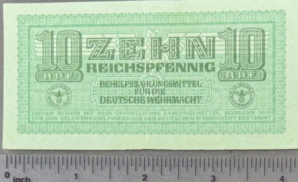 Original WWII German Third Reich Era 10 Reichspfennig Note With National Eagle Certified. Very nice almost mint condition Third Reich Nazi marked currency was supposed to be destroyed, most were. We have several and will pick out the best one for you. Nice used example showing the expected but minimal age and wear. 100% Guaranteed to be authentic good un-circulated condition. Price is for one (1) the one you get will be in as good or BETTER than the one pictured. Complete museum documentation (COA) Provided. RARE! Certified by The Gettysburg Museum of History. The Gettysburg Museum of History does not support or condone Adolf Hitler or the Nazi Party and is only offering this as a historic relic. Please see our other items. ALMOST MINT Also note when browsing our web site there are several pages of items, at the bottom of the list look for other page numbers.