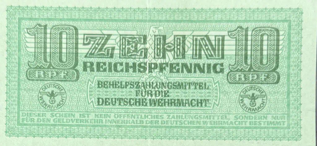 Original WWII German Third Reich Era 10 Reichspfennig Note With National Eagle Certified