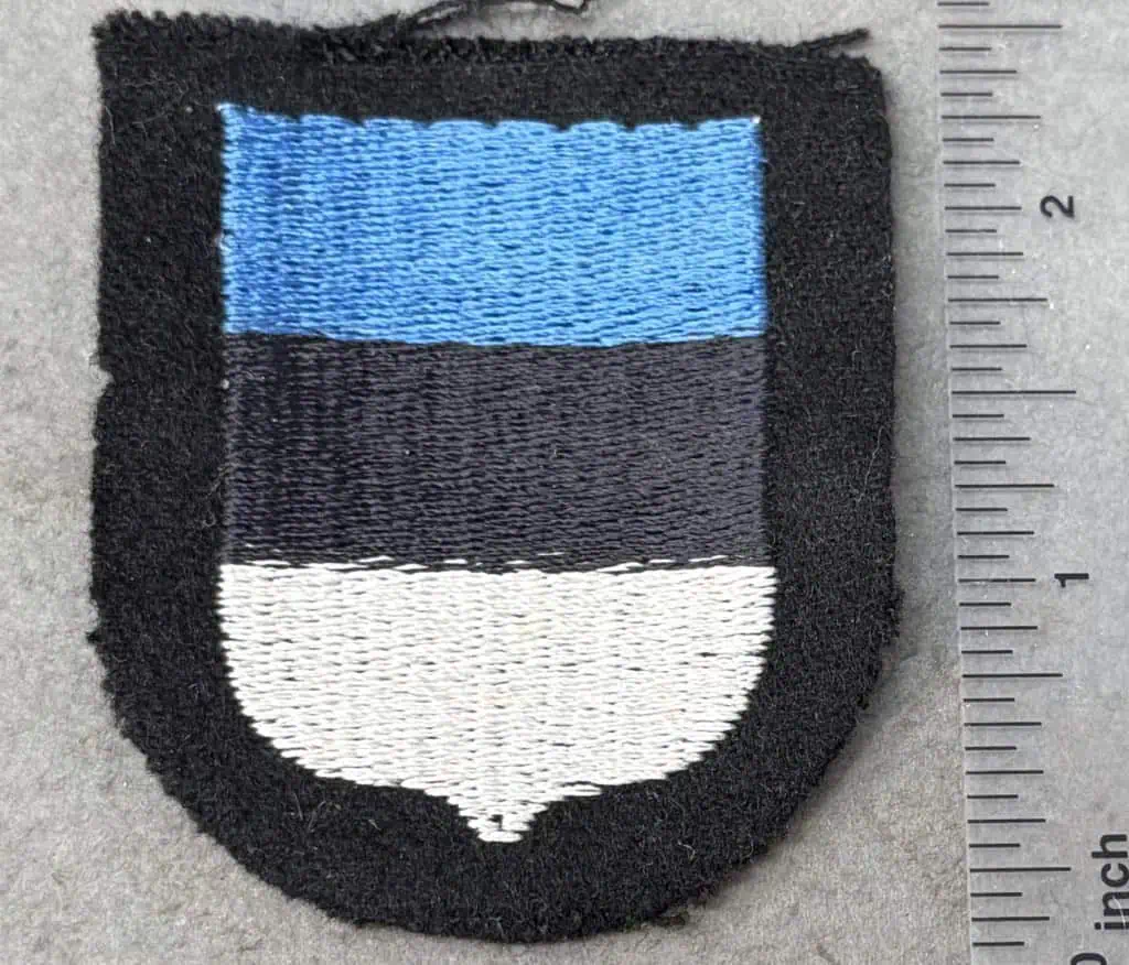 Original WWII German WAFFEN-SS ESTONIAN VOLUNTEER SLEEVE SHIELD. (Landeschilde) Certified