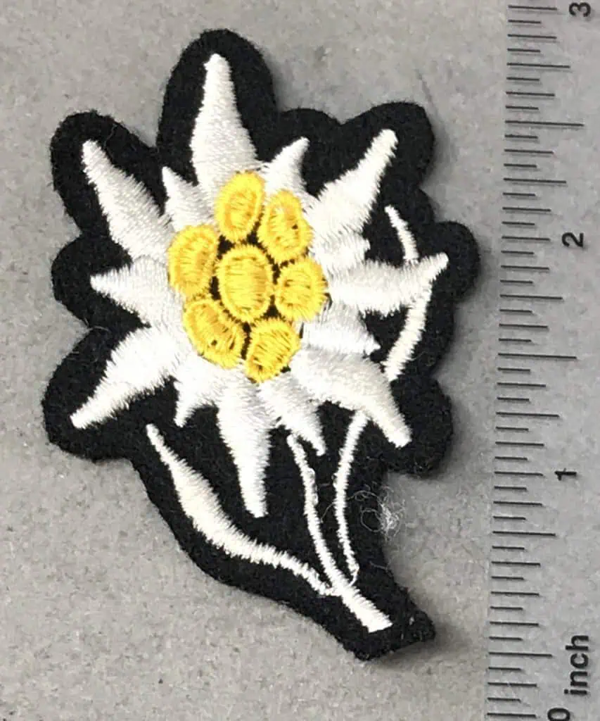 Original WWII German Waffen SS MOUNTAIN TROOP’S CAP EDELWEISS. (SS Ärmel Edelweiss für Gebirgsjäger) Certified.  During WWII the German army fielded nine Mountain Divisions with an additional six Waffen-SS, (Armed-SS), Mountain Divisions. Generally speaking, the Mountain Divisions were specially trained and equipped Infantry Divisions. On October 1ST 1943 Waffen-SS personnel serving with Mountain troop units were authorized wear of the traditional Edelweiss as an identifying insignia. The Edelweiss insignia was issued in two forms with one designed for wear on the left side of the Bergmütze, (Mountain cap), and another design for wear on the upper right sleeve of the greatcoat and tunic. The design of these badges closely followed the pattern of the earlier introduced, (May 2ND 1939), army Edelweiss badges, however the SS cap Edelweiss was only produced in a cloth version as opposed to the metal version utilized by the army. The machine embroidered rayon construction Edelweiss features fourteen, silver/grey petals, a seven bulb, yellow stamen and dual, silver/grey leaves and stem mounted on a cut-out, black wool base. The insignia is roughly, 70mm tall and 50mm wide, at its widest point.  100% guaranteed to be authentic with Museum COA (Certificate Of Authenticity). This SS eagle is one of the desirable artifacts from the Third Reich.  DO NOT MISS THIS! OUTSTANDING EXAMPLE! SS Items are RARE!