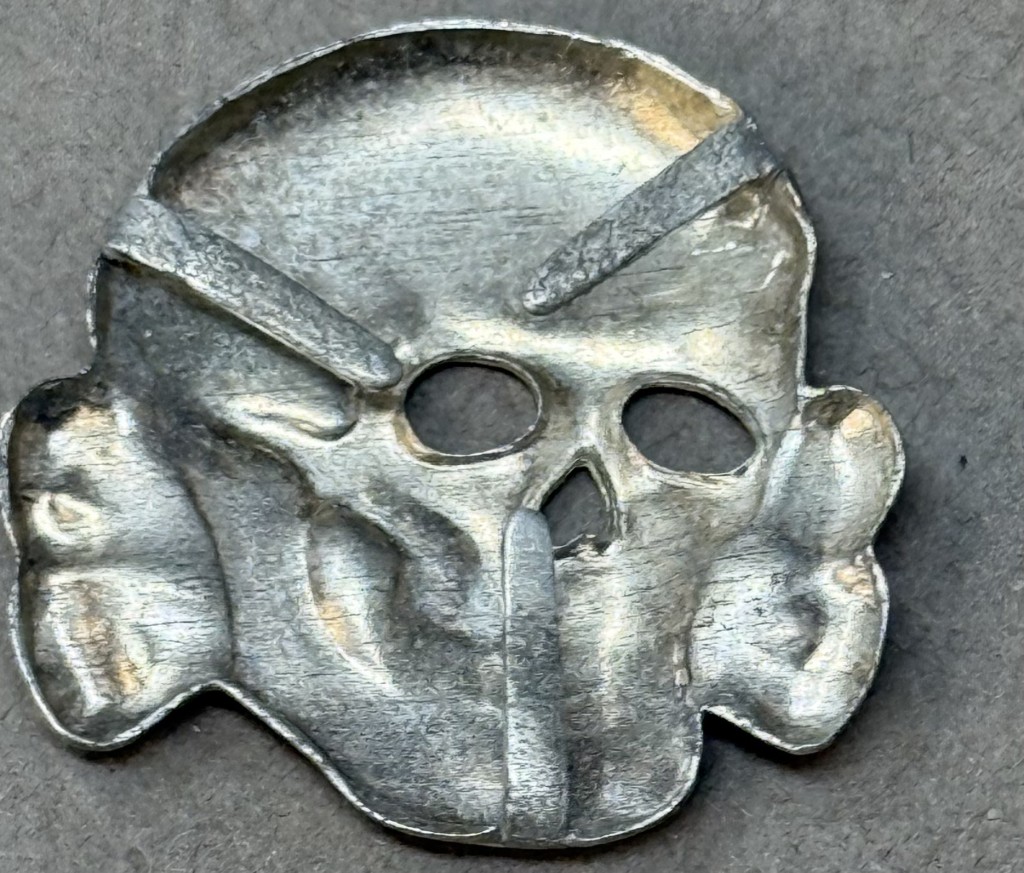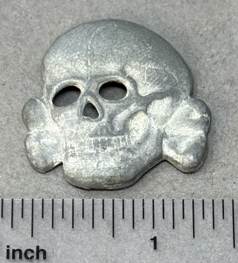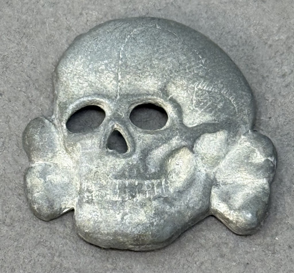 OUTSTANDING Original WWII German SS Visor Cap Skull by Assmann And Son Certified By The Gettysburg Museum Of History. The Allgemeine-SS, (General-SS), was originally formed in May 1923 as the Stosstrupp Adolf Hitler (Shock Troops Adolf Hitler), and was redesignated Schutzstaffel, (Protection Squad), in April 1925 with the official acceptance of the name verified on the second anniversary of the failed Munich “Beer-Hall” Putsch on November 9TH 1925. On January 6TH 1929 Heinrich Himmler was appointed as Reichsführer-SS, (National Leader {of the} SS), and on July 20TH 1934 shortly after the, June 30TH 1934, purge of the SA, Sturm Abteilung, (Storm Troopers) on the “Night of the Long Knives”, the SS was rewarded by Hitler by being granted the status of an independent organization under direct control of the NSDAP, Nationalsozialistische Deutsche Arbeiterpartei, (National Socialist German Worker’s Party). . In an attempt to distance themselves from the SA, the SS introduced a new pattern cap skull to replace the previously used Imperial Prussian Danziger style skull on October 6TH 1934. The distinctive new pattern SS skull remained in use for the duration of the war. 1934 SS pattern, stamped alloy construction skull with a silver wash. The skull features detailed eye and nose cut-outs, two rows of teeth and bottom jaw, superimposed over crossed bones. The skull also has subtle cranium and bone detailing. The hollow backed reverse of the skull is a mirror image of the obverse. The reverse is unmarked this style is manufacture by Assmonn and Son. All of the three original attachment prongs is still intact and very solid to the reverse. OUTSTANDING EXAMPLE, 100% guaranteed to be authentic with Museum COA (Certificate Of Authenticity). This SS Skull is one of the most desirable and iconic artifacts from the Third Reich. DO NOT MISS THIS! OUTSTANDING EXAMPLE! SS Items are RARE and desirable to collectors and historians! THIS IS THE FIRST METAL M34 SS SKULL WE HAVE SOLD IN OVER A YEAR!