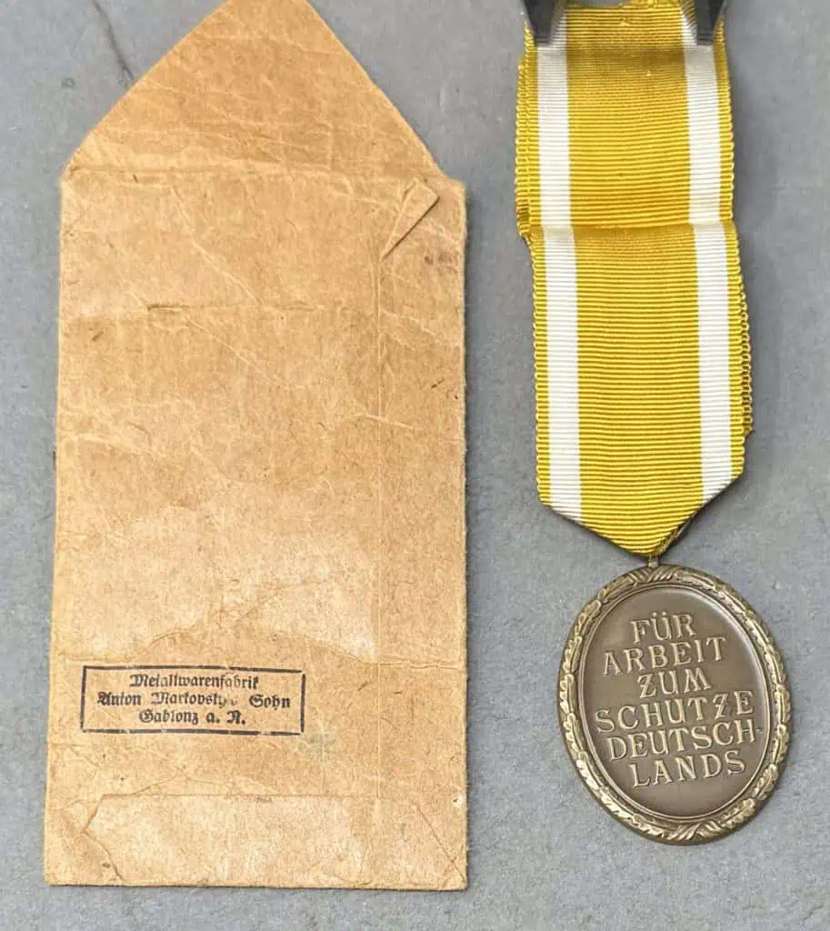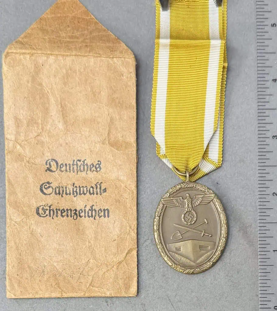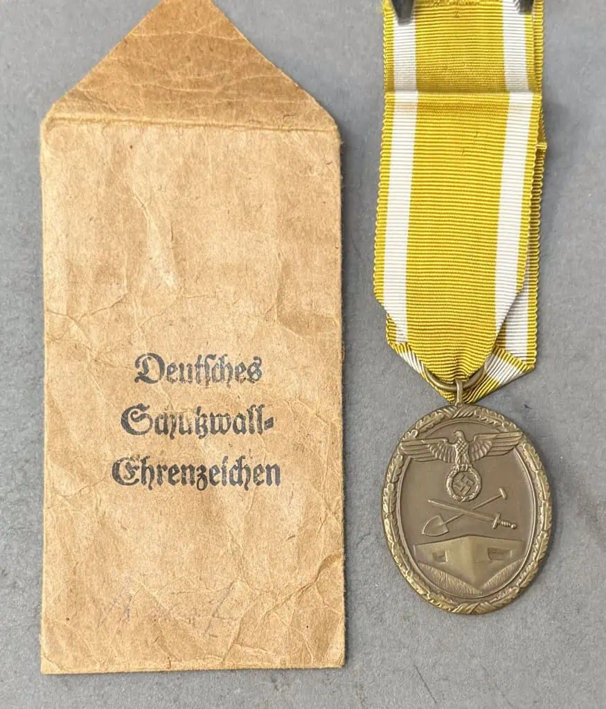 Original WWII German West Wall Medal With Envelope (Deutsches Schutzwall-Ehrenzeichen) Certified