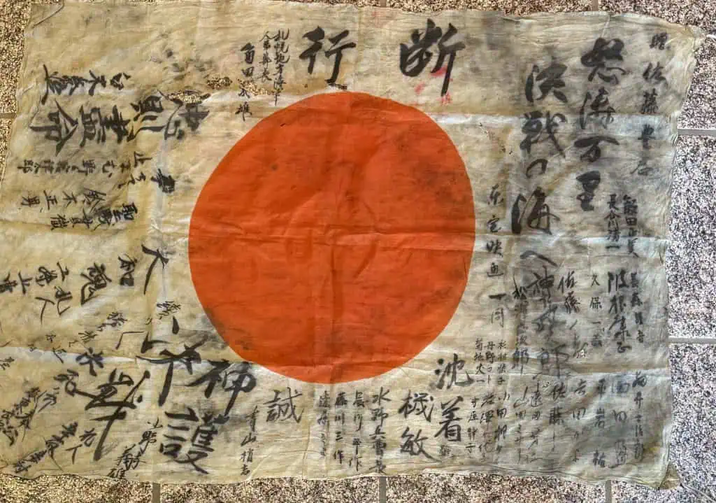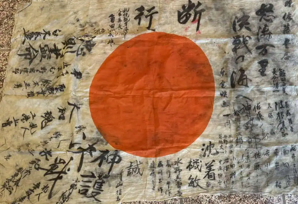 Original WWII Japanese NATIONAL FLAG WITH KANJI Brought Home By A U.S. Veteran Certified