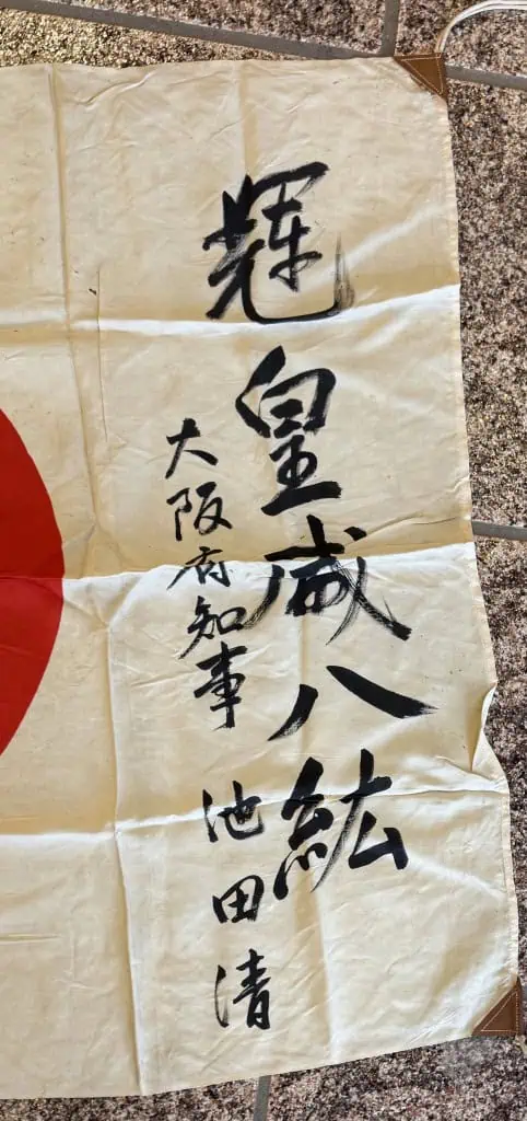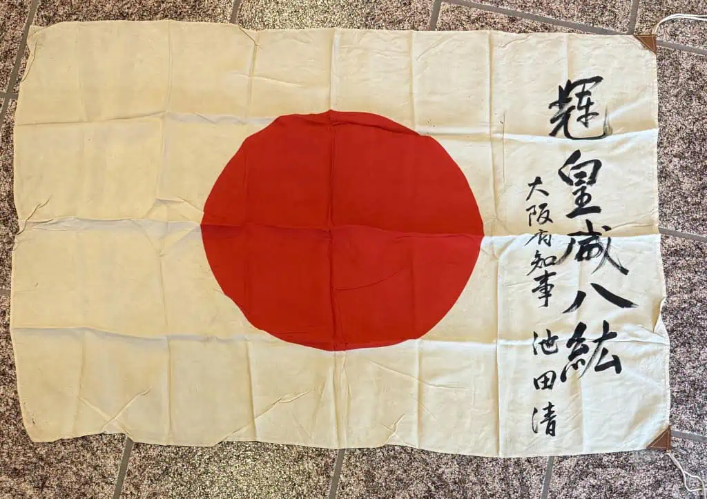 Original WWII Japanese NATIONAL FLAG WITH KANJI Brought Home By A U.S. Veteran Certified